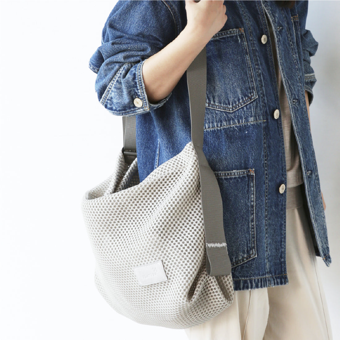 アクティブなコーディネートにぴったりなメッシュ素材のショルダーバッグです。