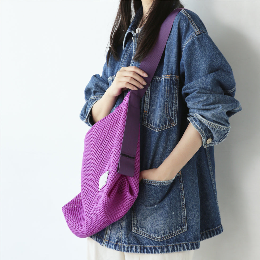 アクティブなコーディネートにぴったりなメッシュ素材のショルダーバッグです。