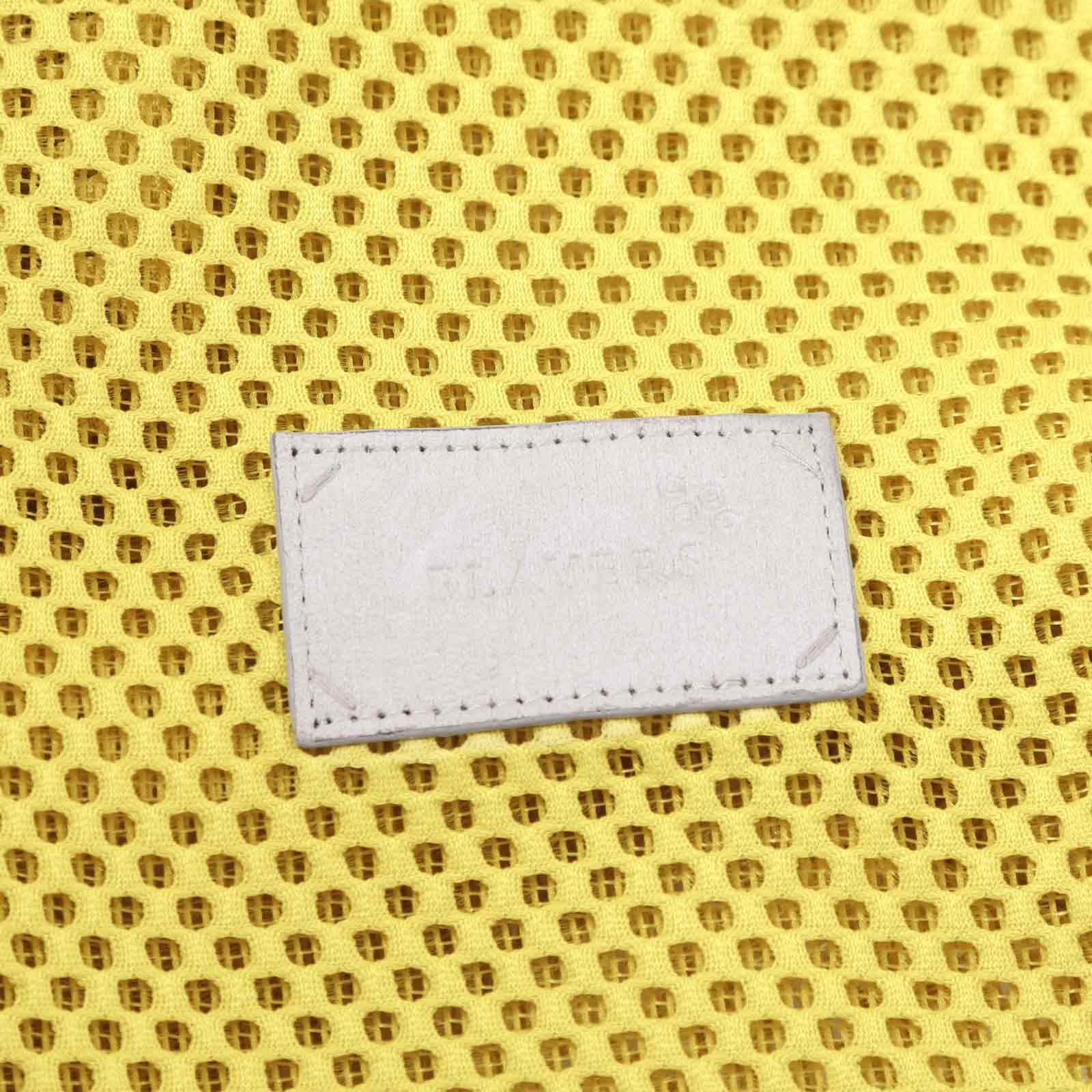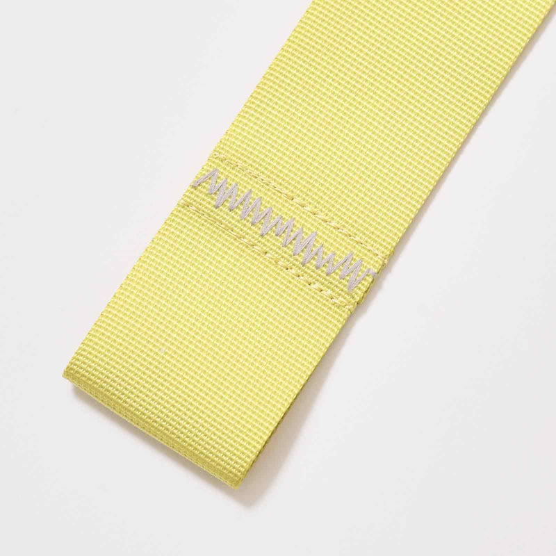 ショルダーベルトの先端に縫い付けられたステッチがさりげないアクセントに。イエローにはさわやかな白のステッチ。