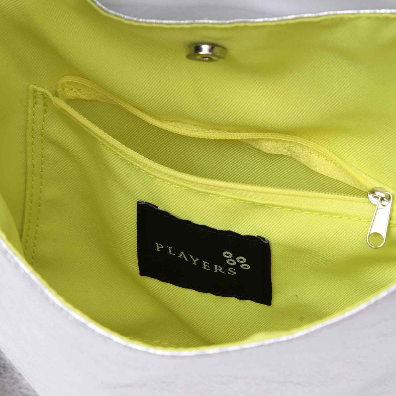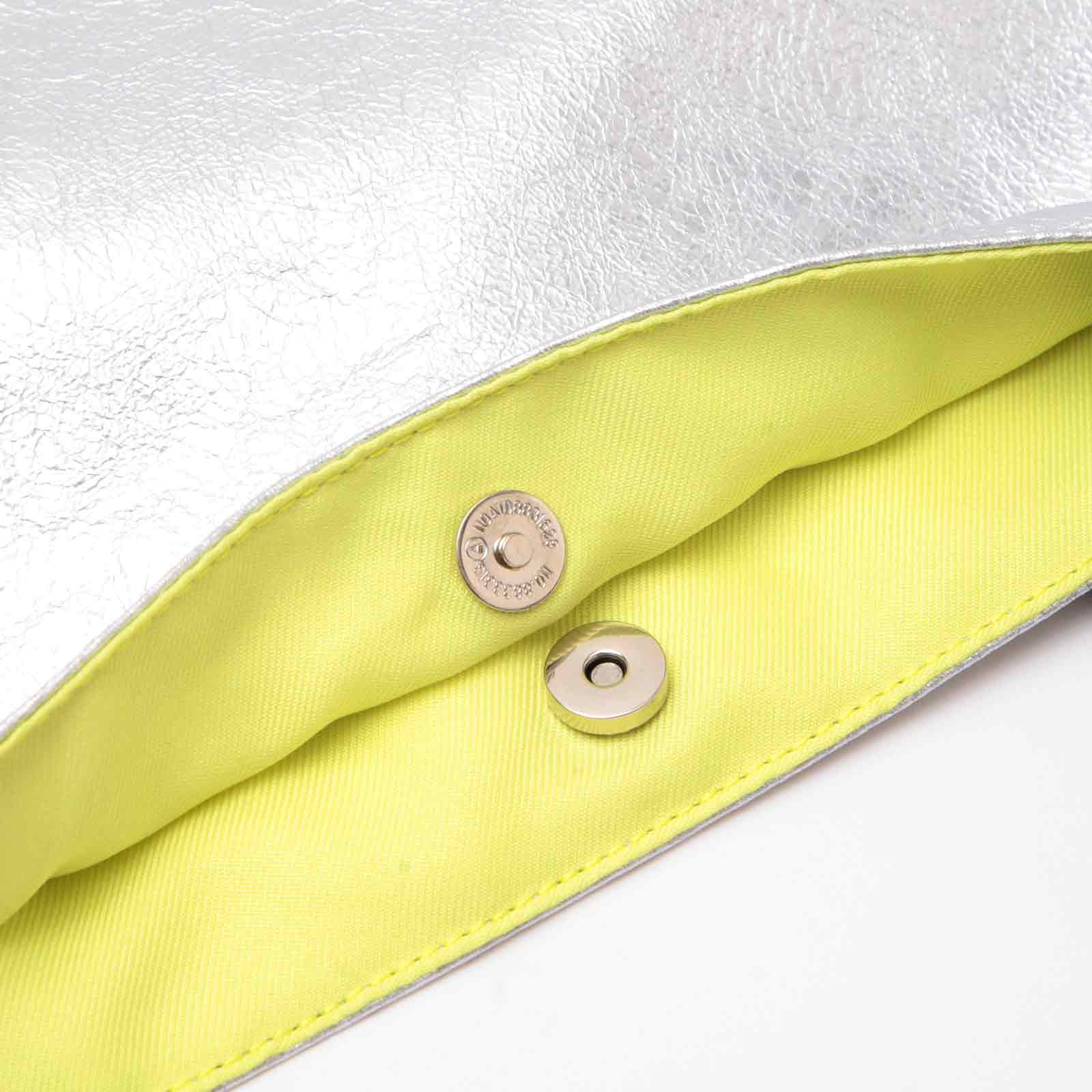 開口部はマグネットボタン式で中を開きやすく、小物の整理に便利なファスナーポケットが1カ所内側についています。
