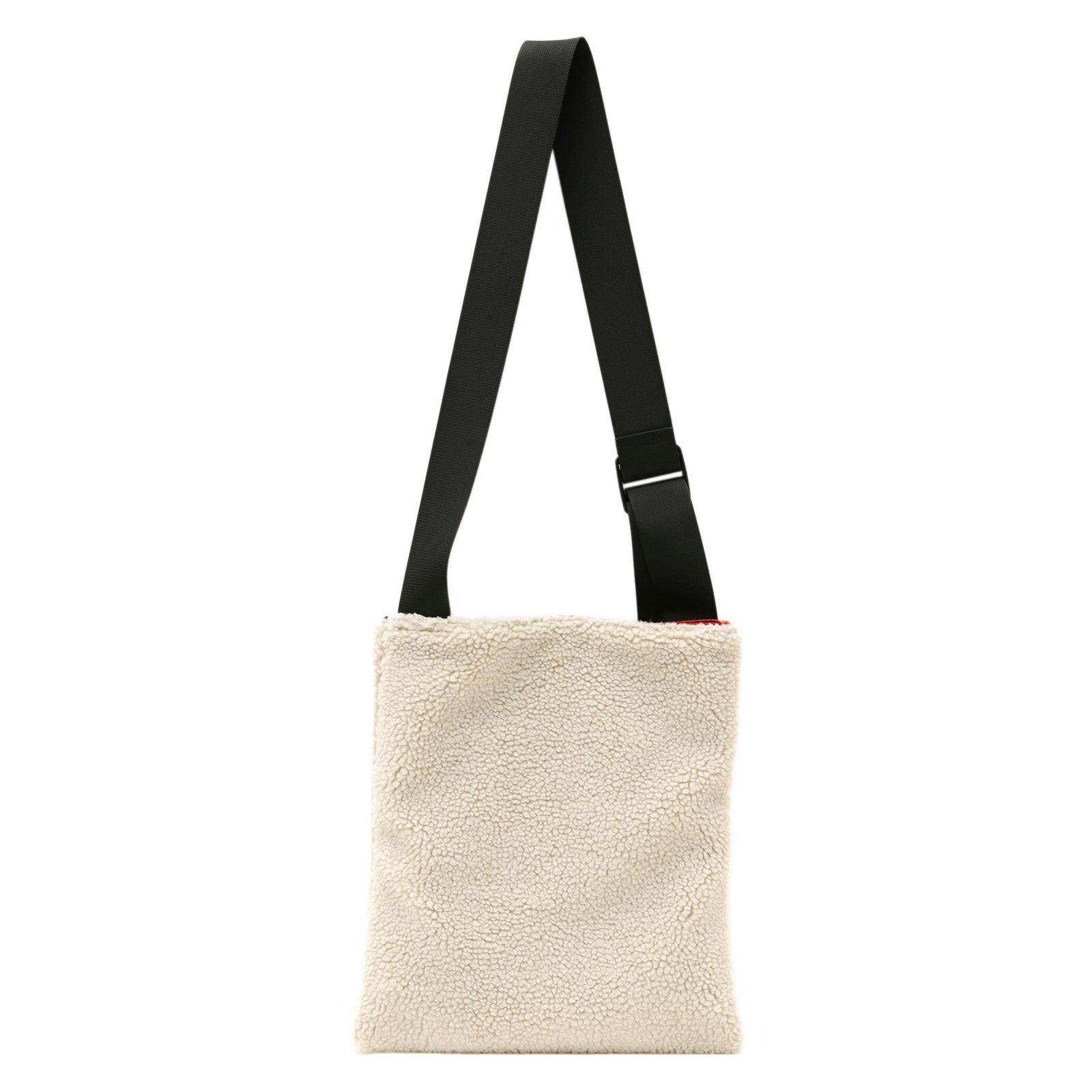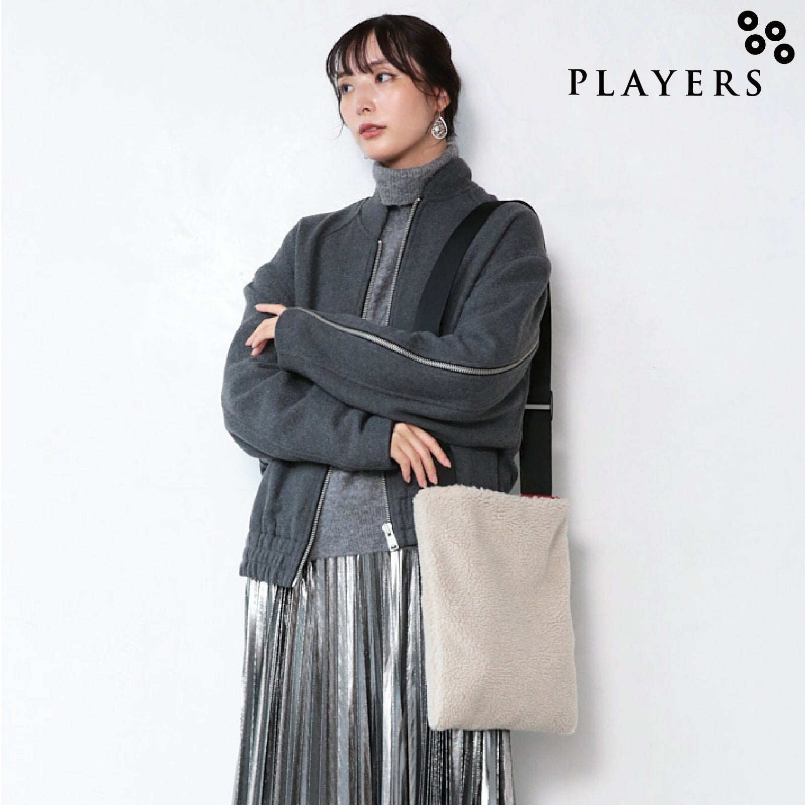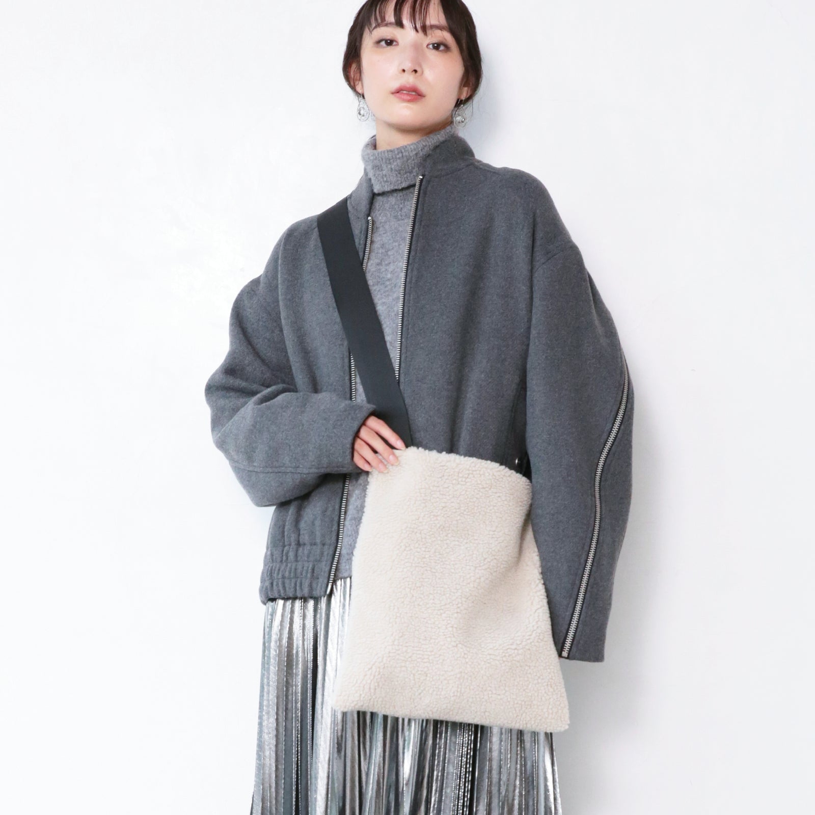 ボア素材を使用しており、ちらりとのぞくオレンジの裏地がアクセントになっています。