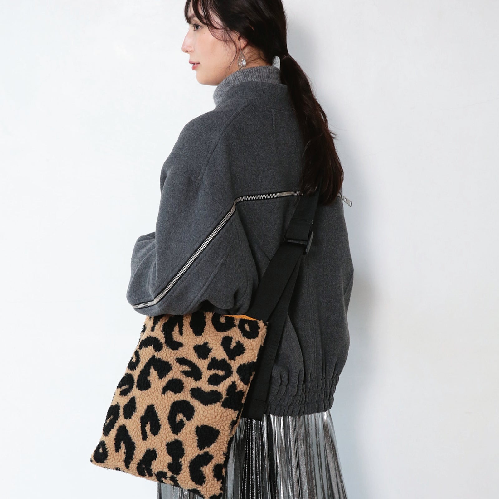 ボア素材を使用しており、ちらりとのぞくマスタードイエローの裏地がアクセントになっています。