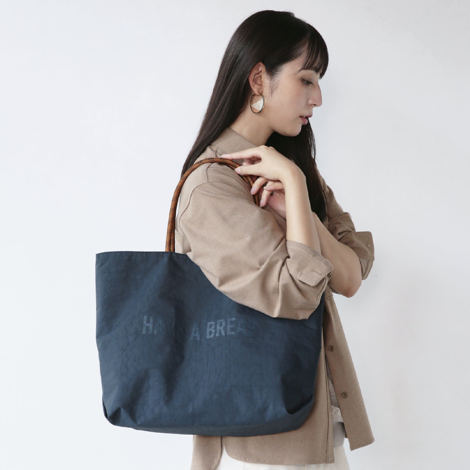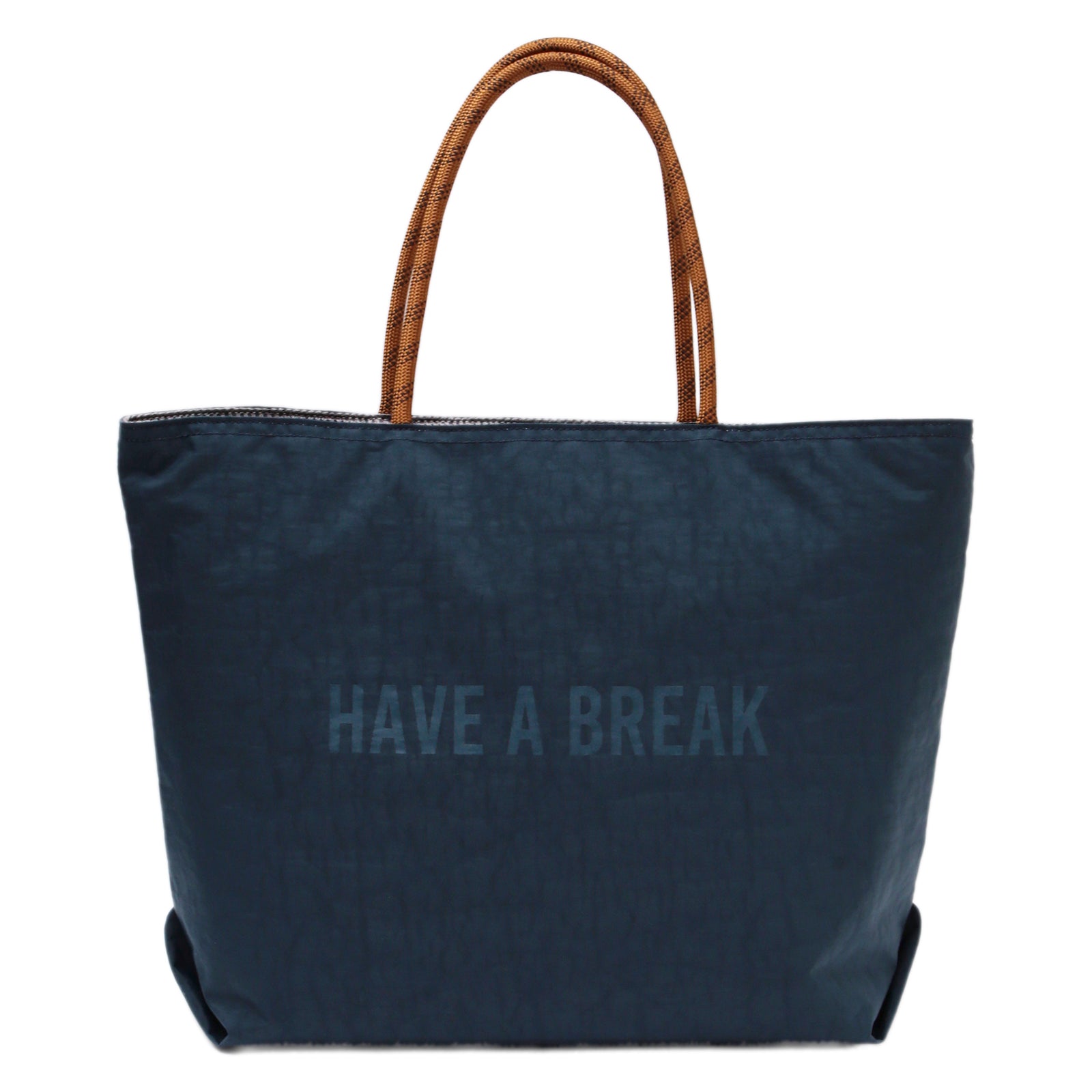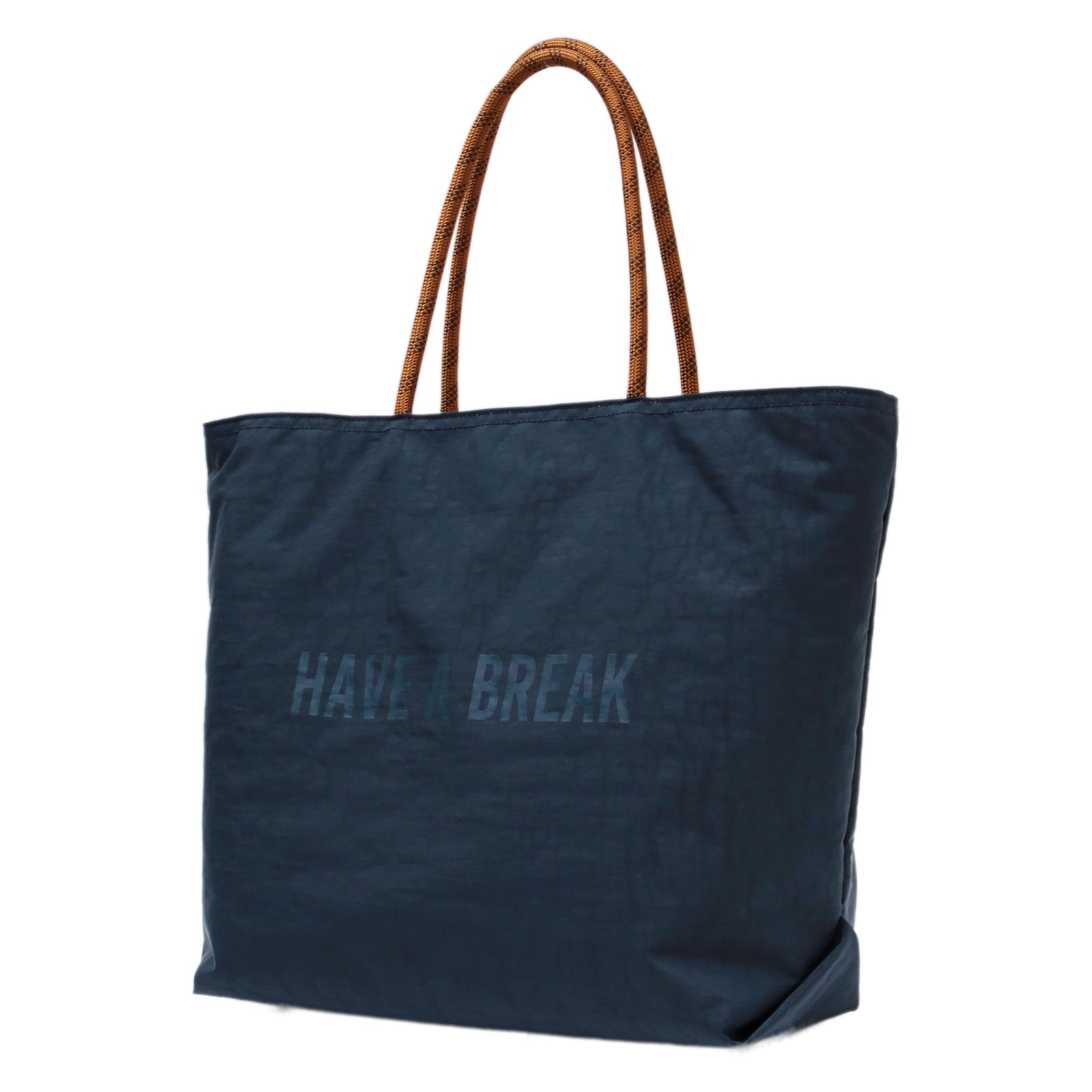 カラフルなナイロン面は「HAVE A BREAK」のメッセージメッセージロゴ入りでアクティブスタイルにぴったり。オープンポケットが1か所ついていて、荷物の仕分けも簡単です。