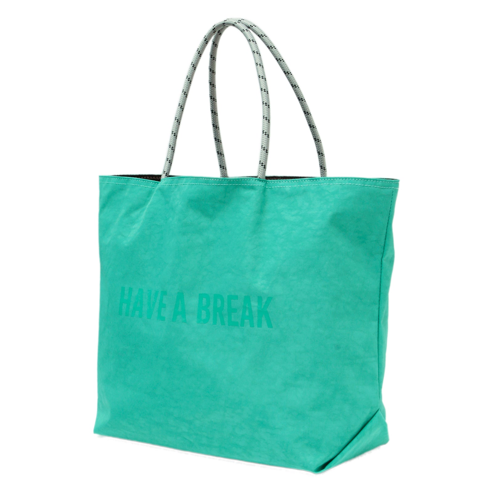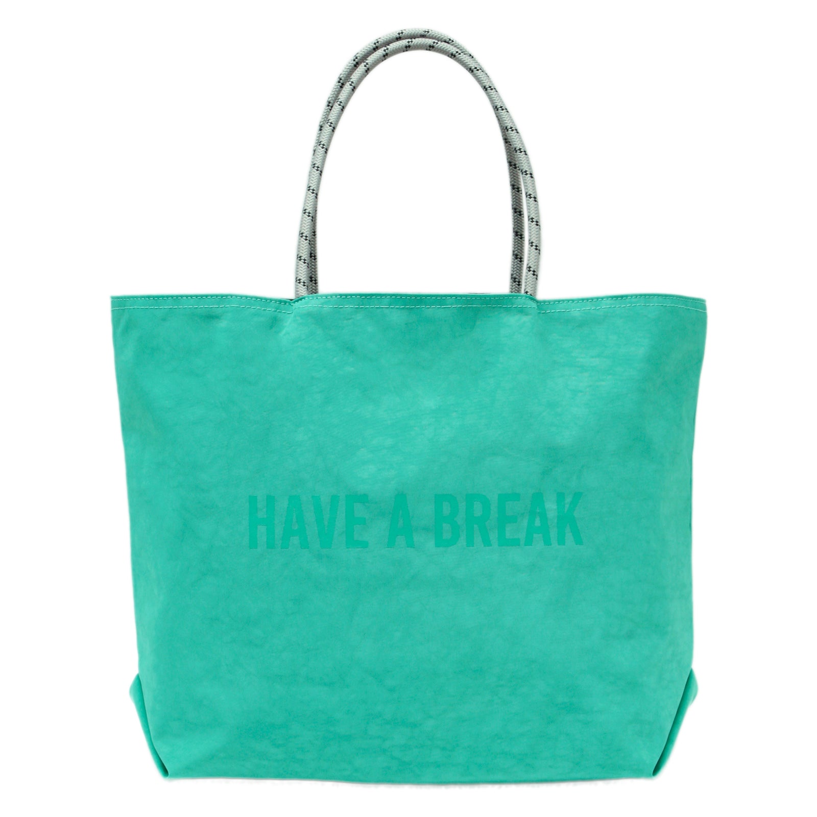 カラフルなナイロン面は「HAVE A BREAK」のメッセージメッセージロゴ入りでアクティブスタイルにぴったり。オープンポケットが1か所ついていて、荷物の仕分けも簡単です。