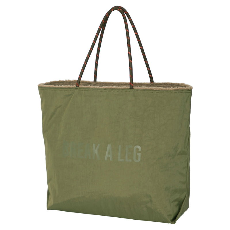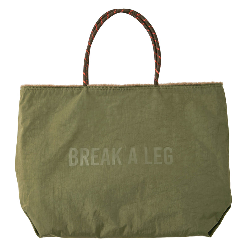 カーキとロゴメッセージでスポーティーに。 さりげなく浮かび上がるメッセージは "BREAK A LEG" (成功を祈る)