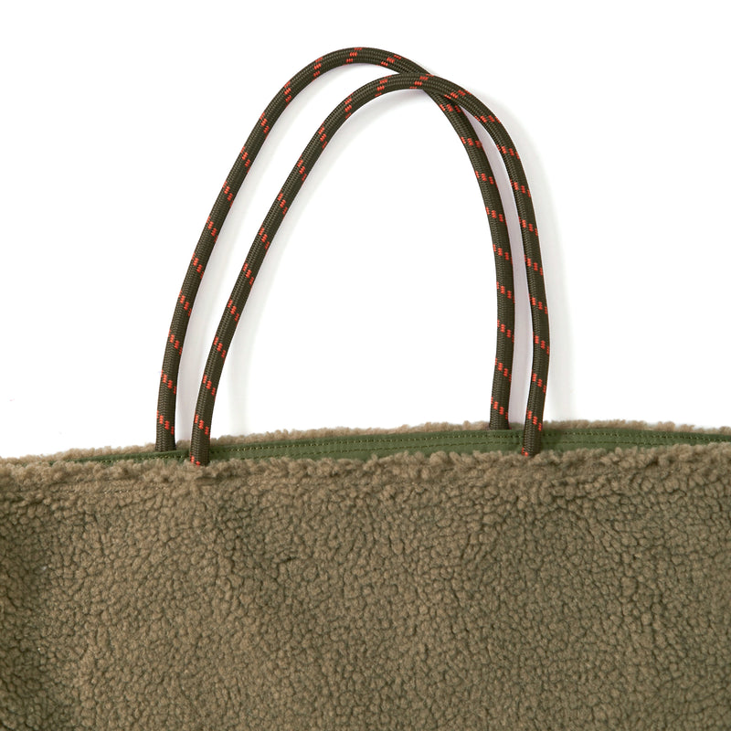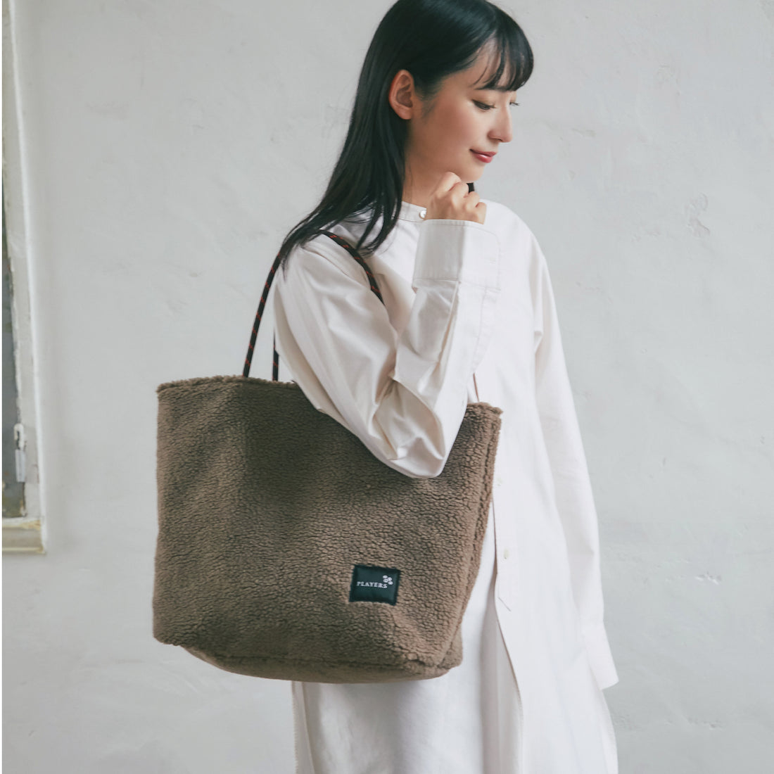 片面がトレンド感のあるボア素材になっている為、秋冬のコーディネートにぴったりなデザインです。肩の凝らない軽量さがポイントで、持ち手のカラフルなドローコードがアクセントになっています。