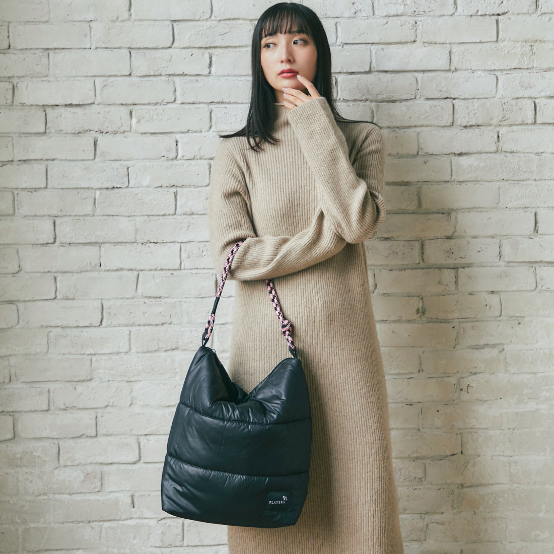 かばん全体に薄く中綿が入っているので軽くふわりとした持ち心地のカジュアルなバッグです。