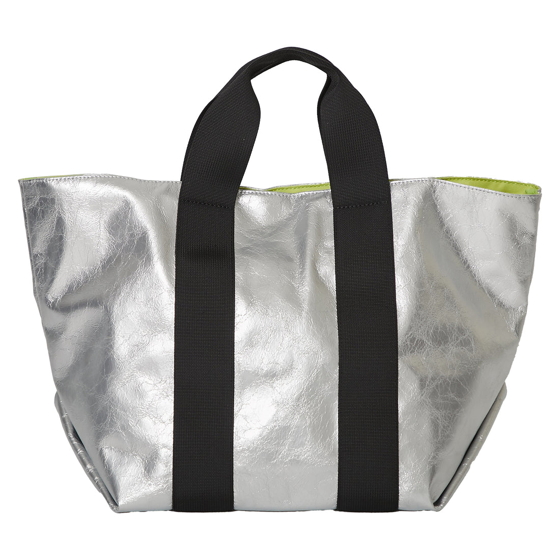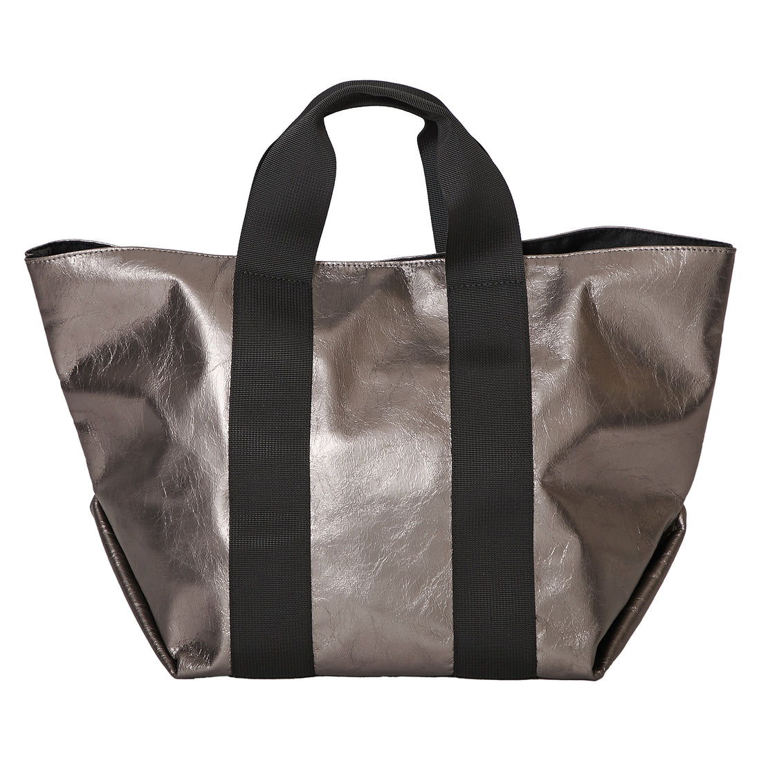 しわ加工を施した合皮素材で、日常使いにぴったりなデザインです。ちらっと覗く裏地の配色がコーディネートのポイントになります。マチが22cmとたっぷりとした容量のトートバッグです。ファスナーがある内ポケット付きなので、貴重品を分けて収納ができます。
