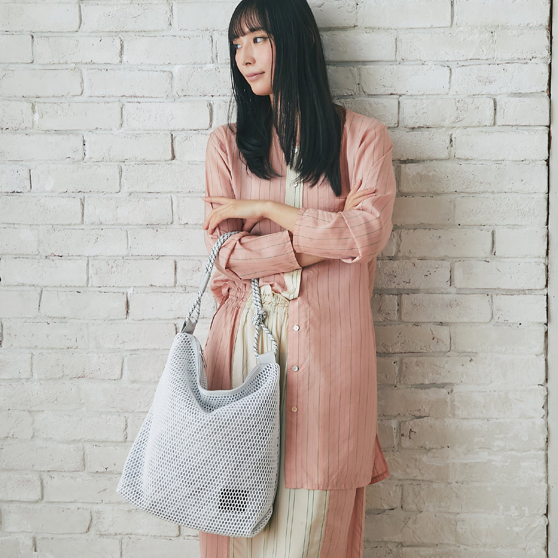 メッシュ素材とリップストップ素材を重ねた、 軽量感のあるワンショルダーバッグです。