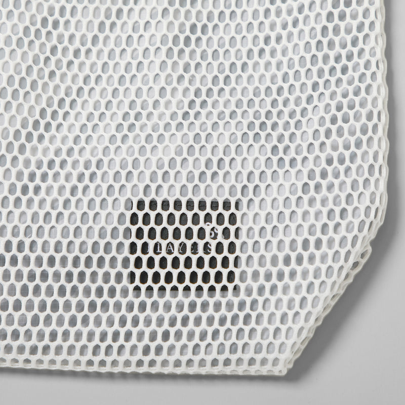 裏地のプリントがほんのりメッシュから透けておしゃれ感があります。 A4サイズまで収納でき、マチ付きで底板もついているため たっぷりと収納していただけます。