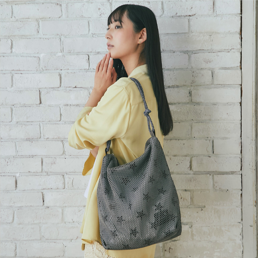 メッシュ素材とリップストップ素材を重ねた、 軽量感のあるワンショルダーバッグです。