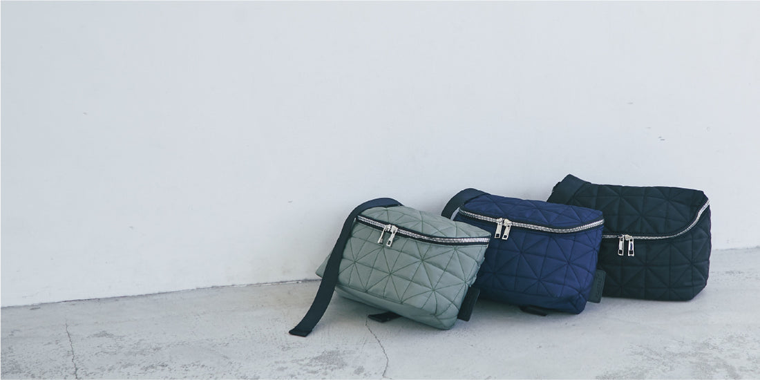 幾何学模様のシャープなデザインは大人のカジュアルファッションにぴったり ボディバッグとして使ってもさらりと決まります