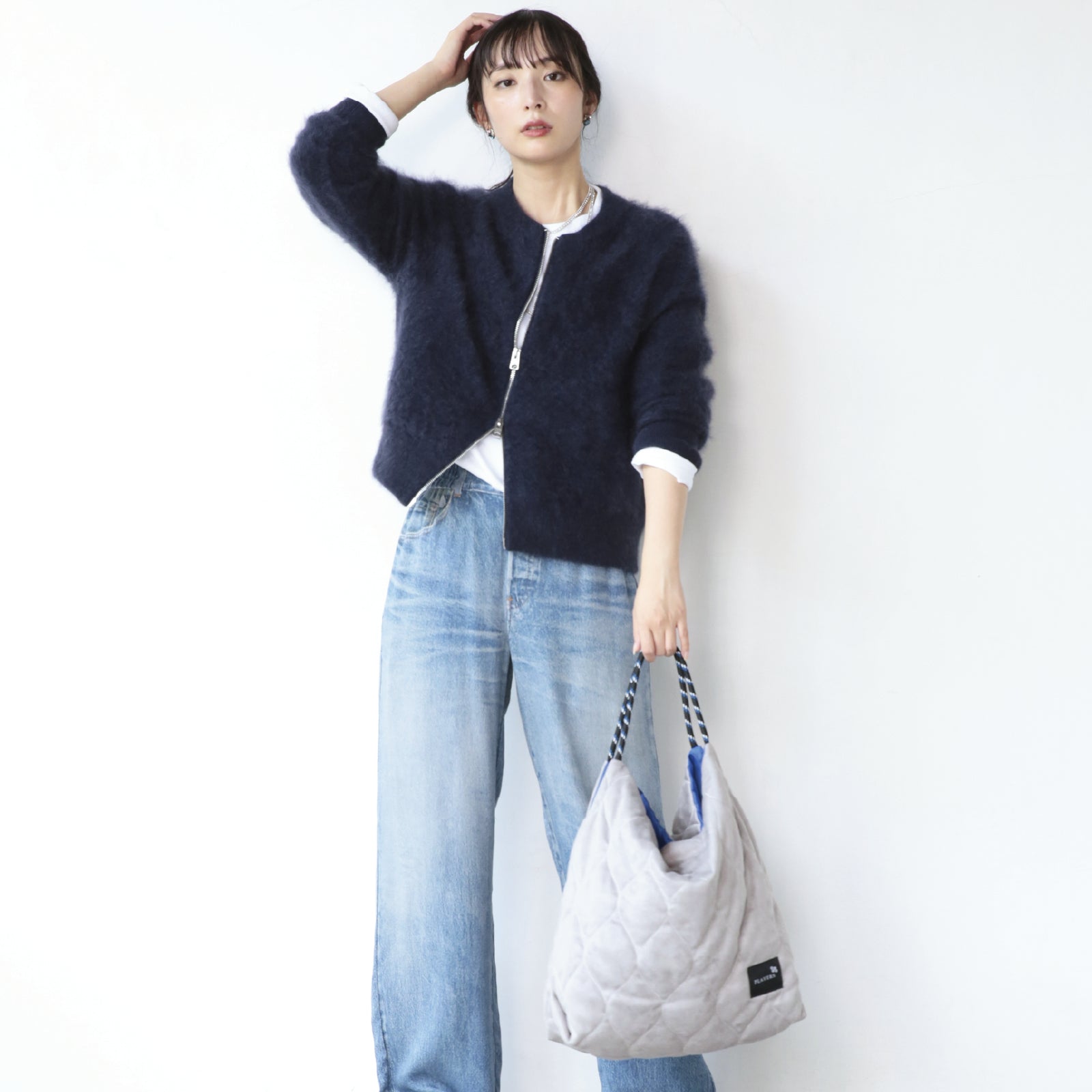 内側にはファスナーポケットが1カ所ついているので、小物の仕分けも簡単。開口部はマグネットボタン仕様です。