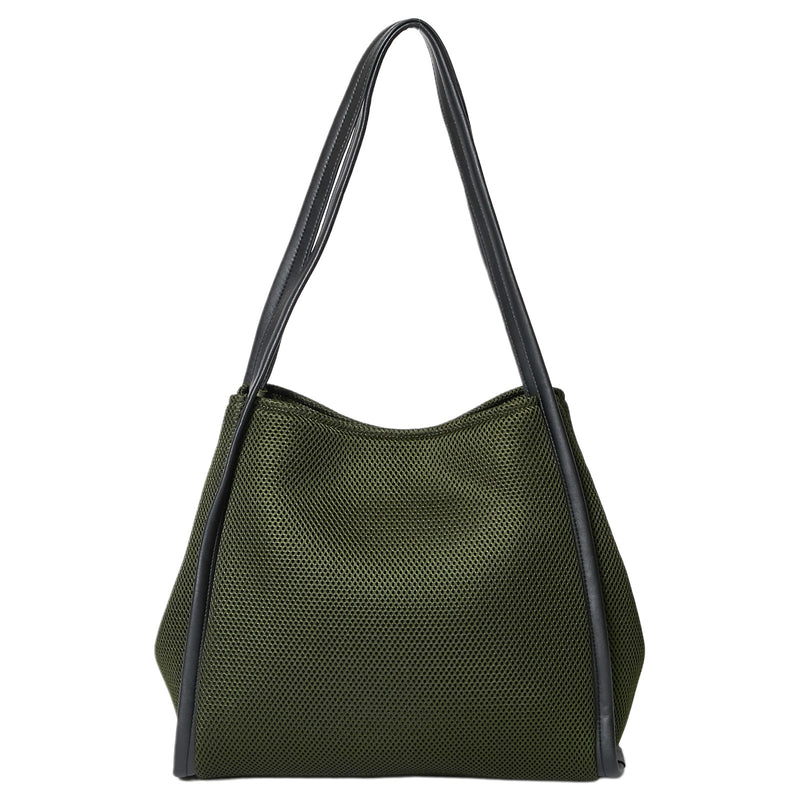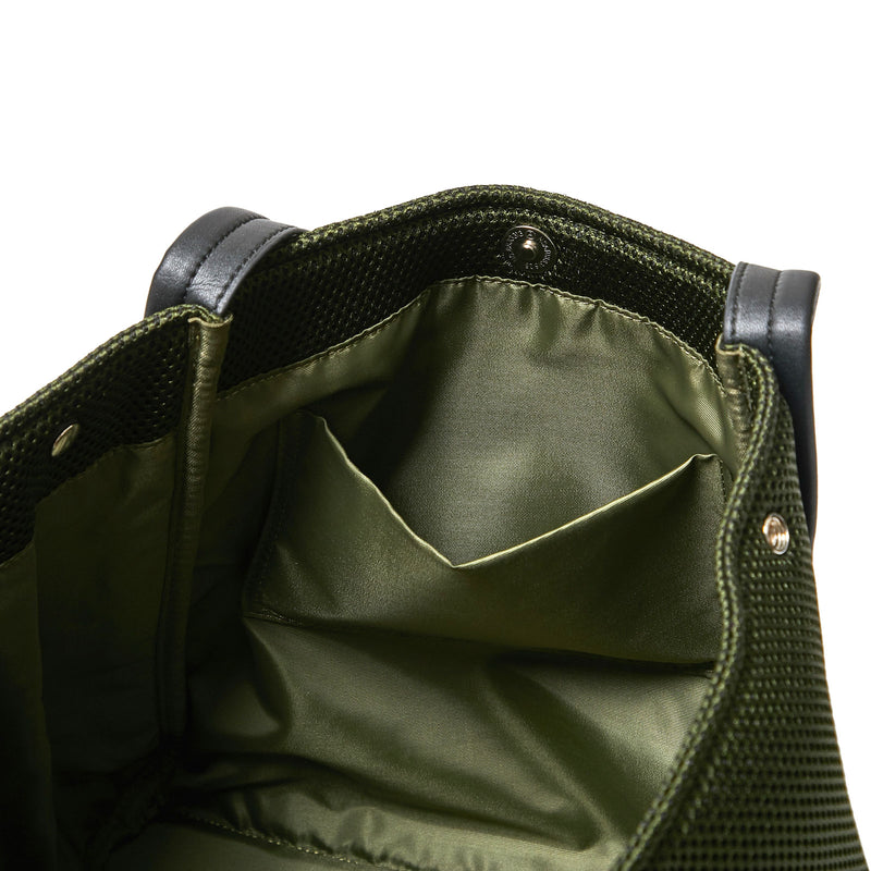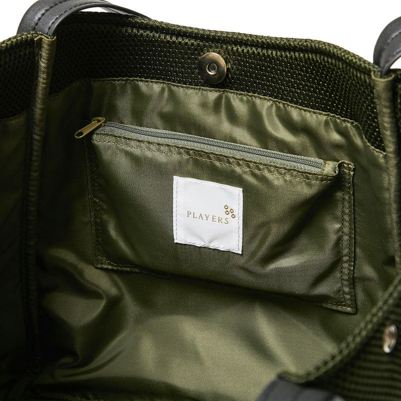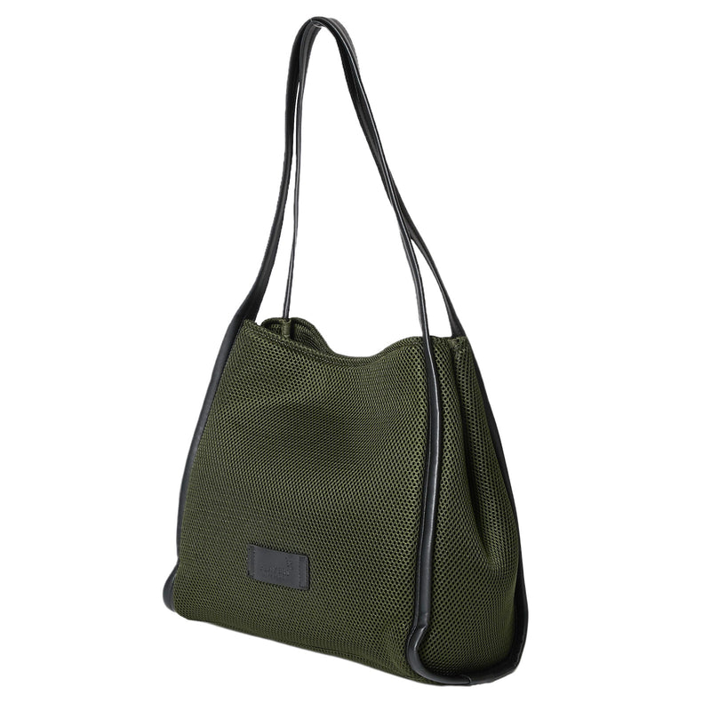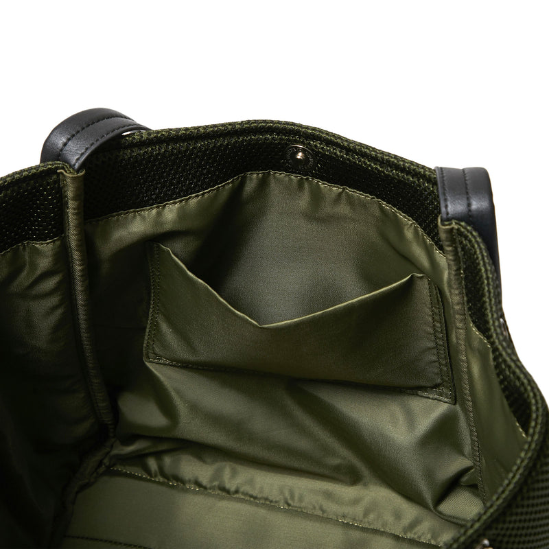 トレンドのメッシュ素材を使用したトートバッグです。ノートパソコンや書類がすっぽりと収まる大容量。 軽量で柔らかい素材はアクティブに活動する日にも大活躍です。マザーズバッグやジム通いの際にもぴったりです。バッグ開口部はマグネット式で物の出し入れが間単におこなえます。サイドのスナップボタンを留めればよりシンプルなフォルムでお使い頂けます。持ち手は長めに作られているので肩かけ時もゆったりとお使い頂けます。