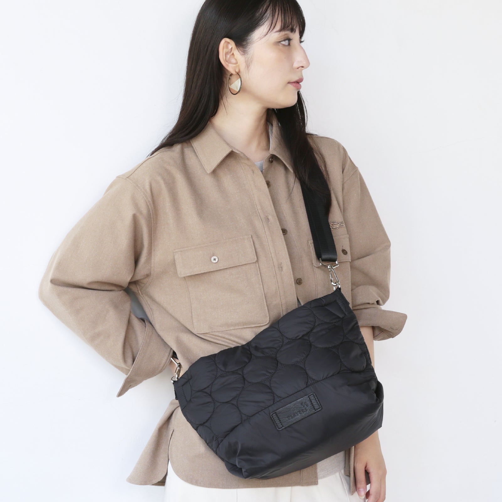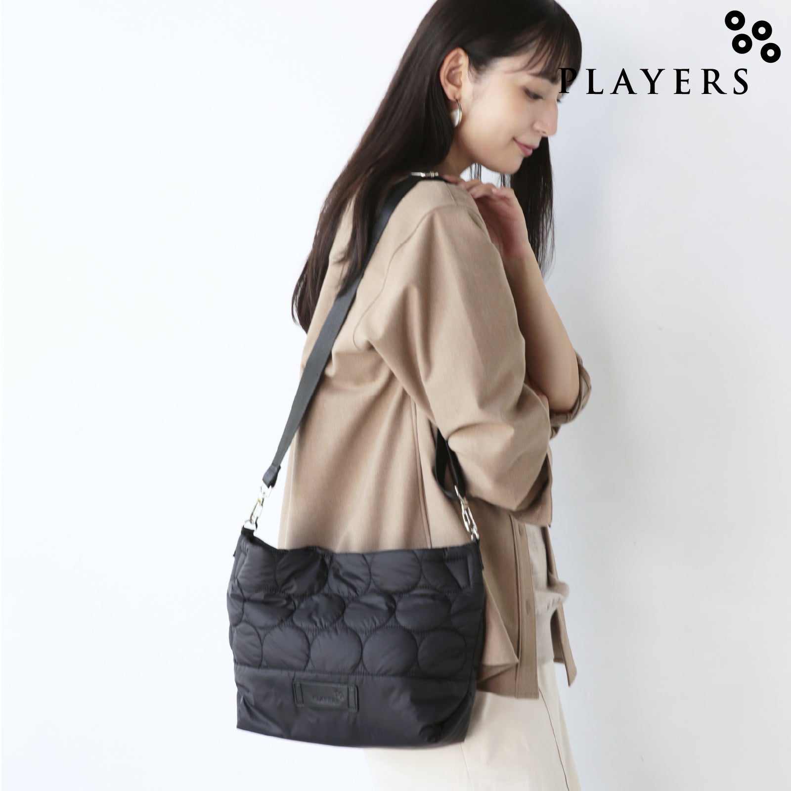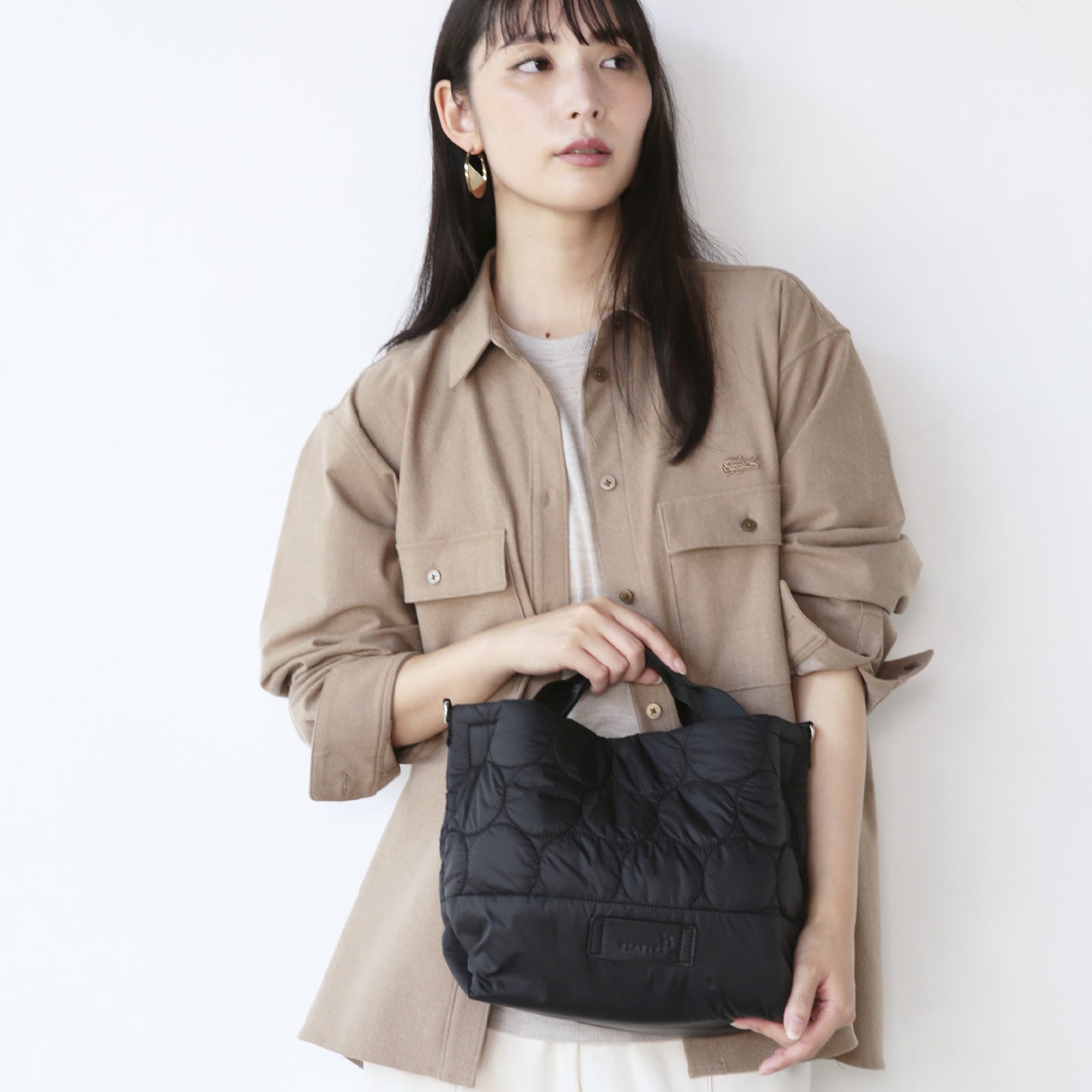軽量で持ちやすく、ペットボトルや長財布も入る横長のトートバッグです。ショルダーベルトをつけると、斜め掛けバッグとしても使用でき幅広いシーンで活躍します。