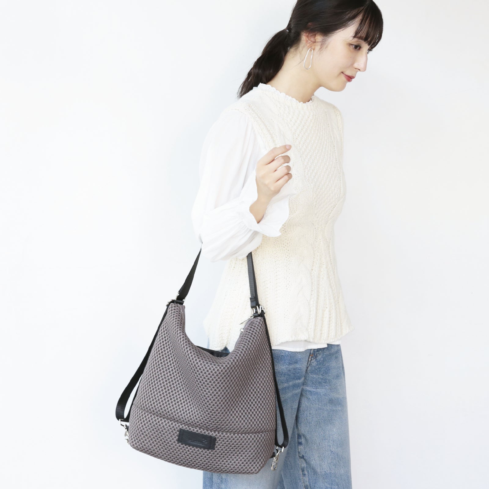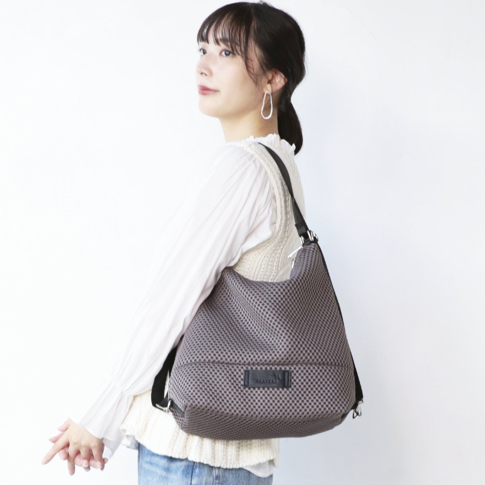 リュック、肩掛けショルダー、ななめがけトートの3パターンで使える便利さは変わらず、キュートなミニサイズにリニューアルしました。