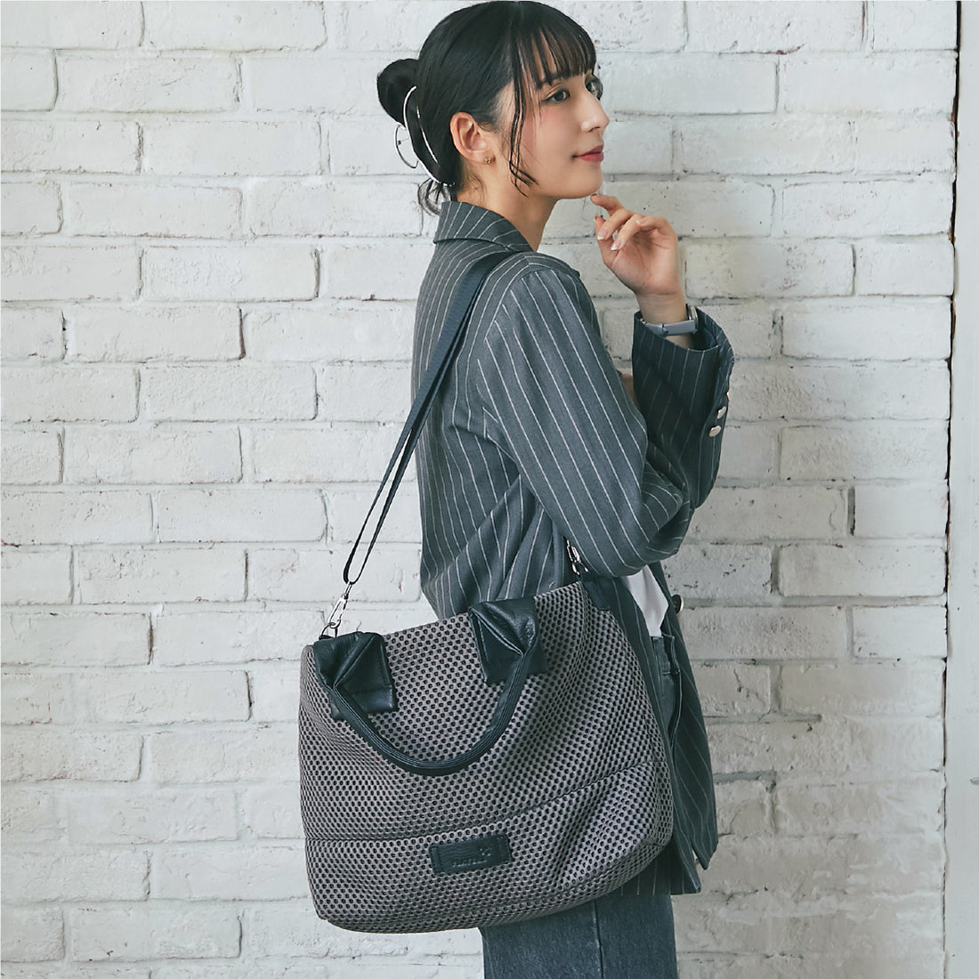 PCや雑誌をいれて重くなっても太めのショルダーベルトなら負担が少なく安心。合皮のハンドルもクッション性が高く、ひじ掛けしやすいつくりです。