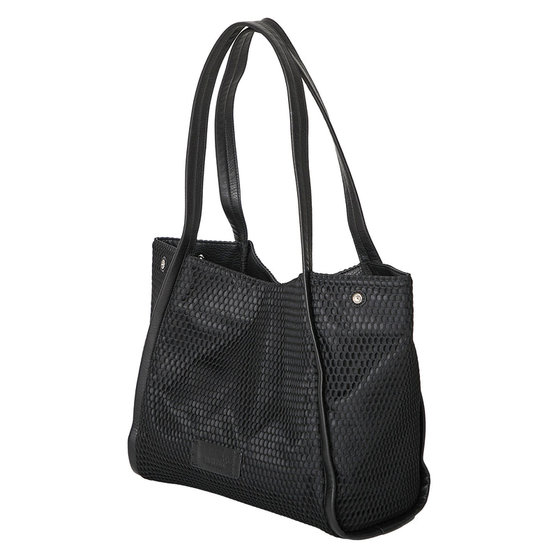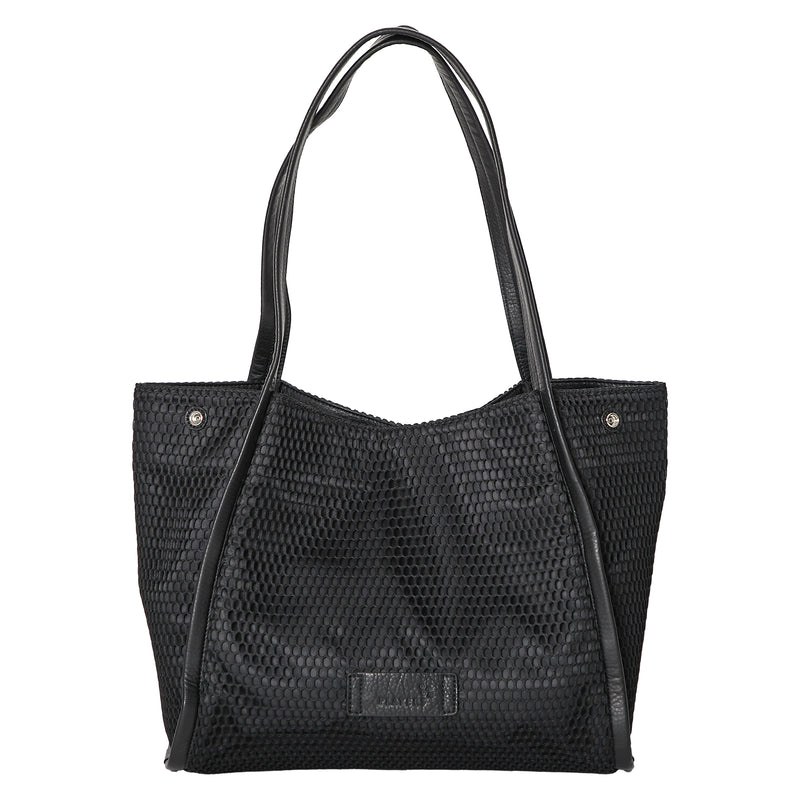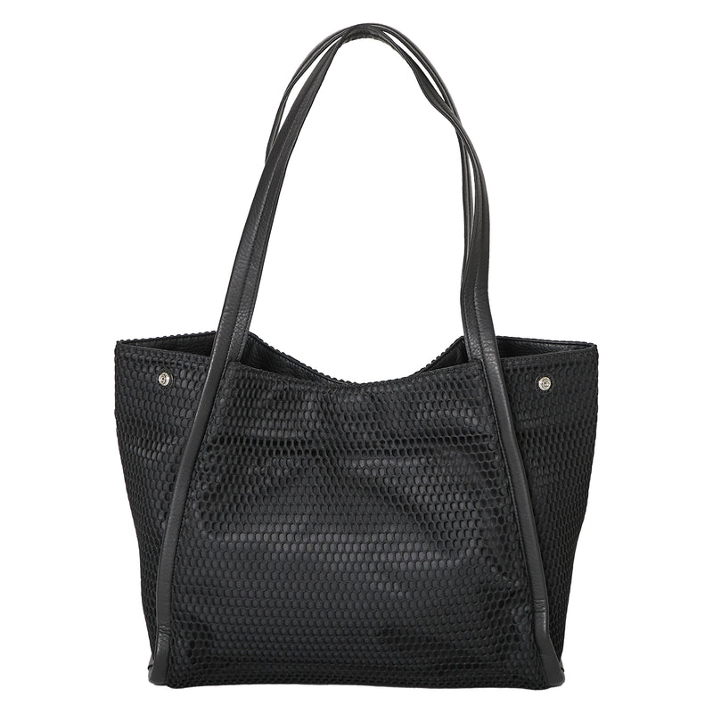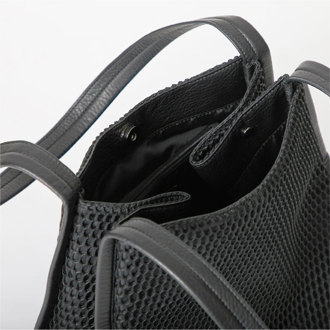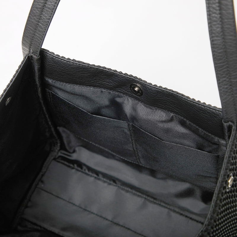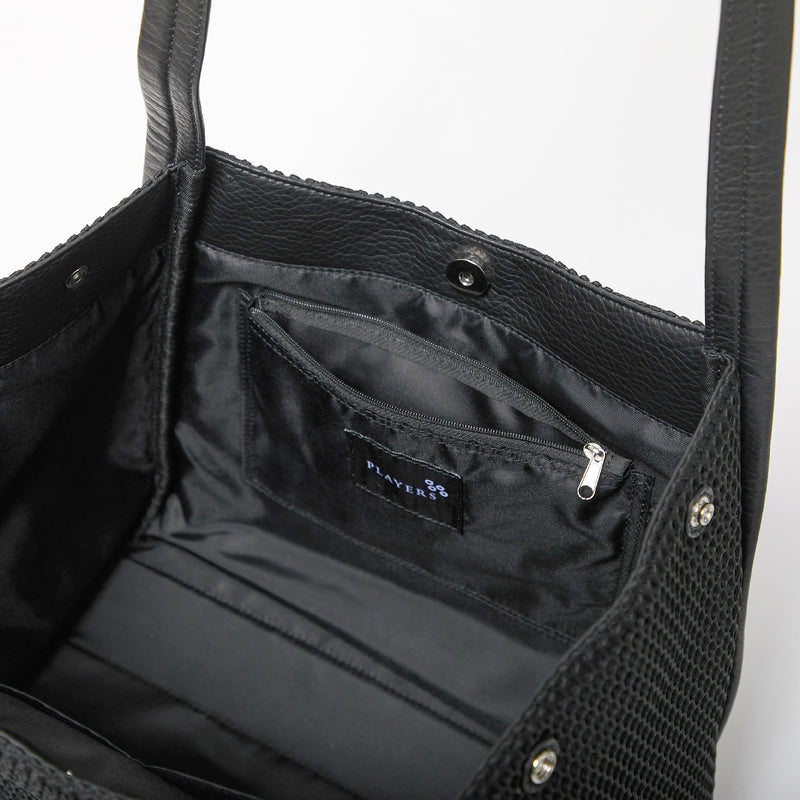 長めのハンドルで肩にかけたまま荷物の出し入れが出来るのがポイントです。内側には、貴重品を入れるのに最適なファスナーポケットと小物の仕分けに適したオープンポケットが2か所あります。開口部は荷物の飛び出しを防ぐスナップボタン付き。