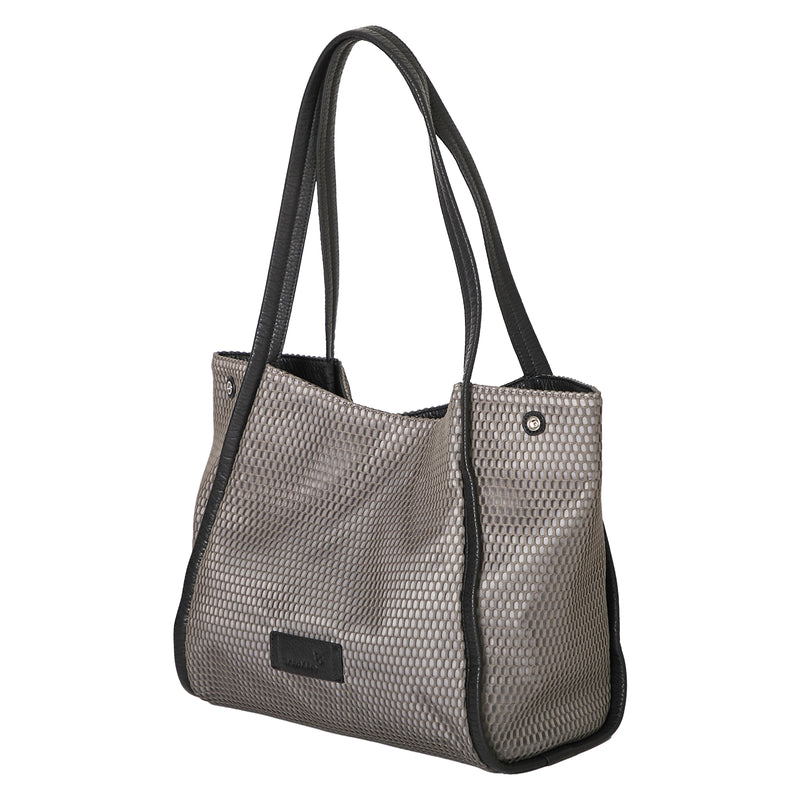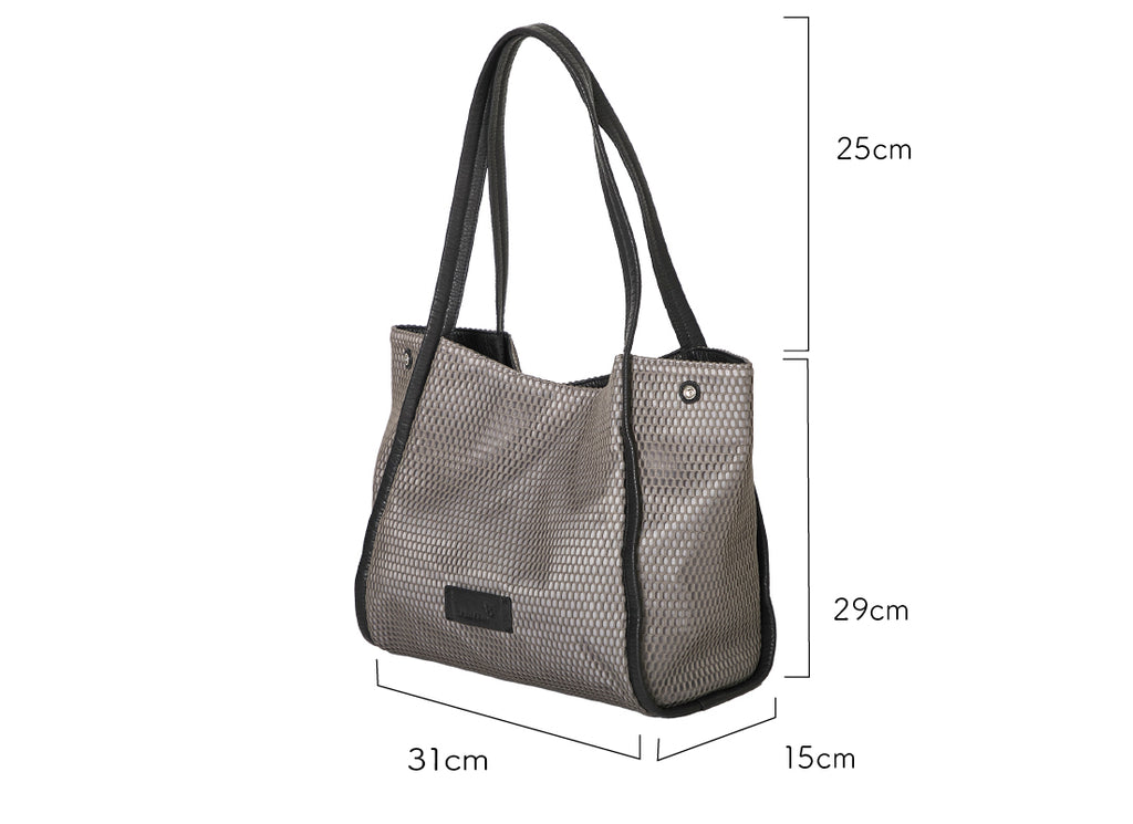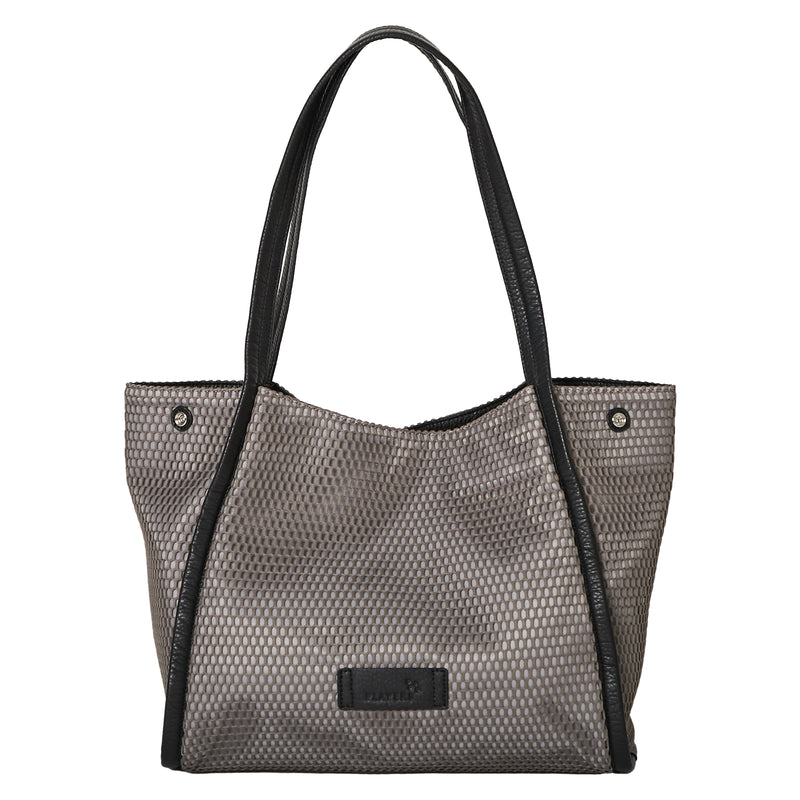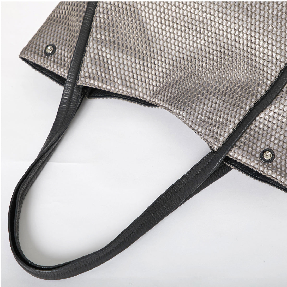 長めのハンドルで肩にかけたまま荷物の出し入れが出来るのがポイントです。内側には、貴重品を入れるのに最適なファスナーポケットと 小物の仕分けに適したオープンポケットが2か所あります。開口部は荷物の飛び出しを防ぐスナップボタン付き。