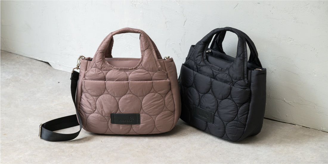 PLAYERSブランドのメインモチーフであるサークルステッチのキルト生地を使用した、ワンマイル使いに便利なコンパクトサイズのトートバッグ。