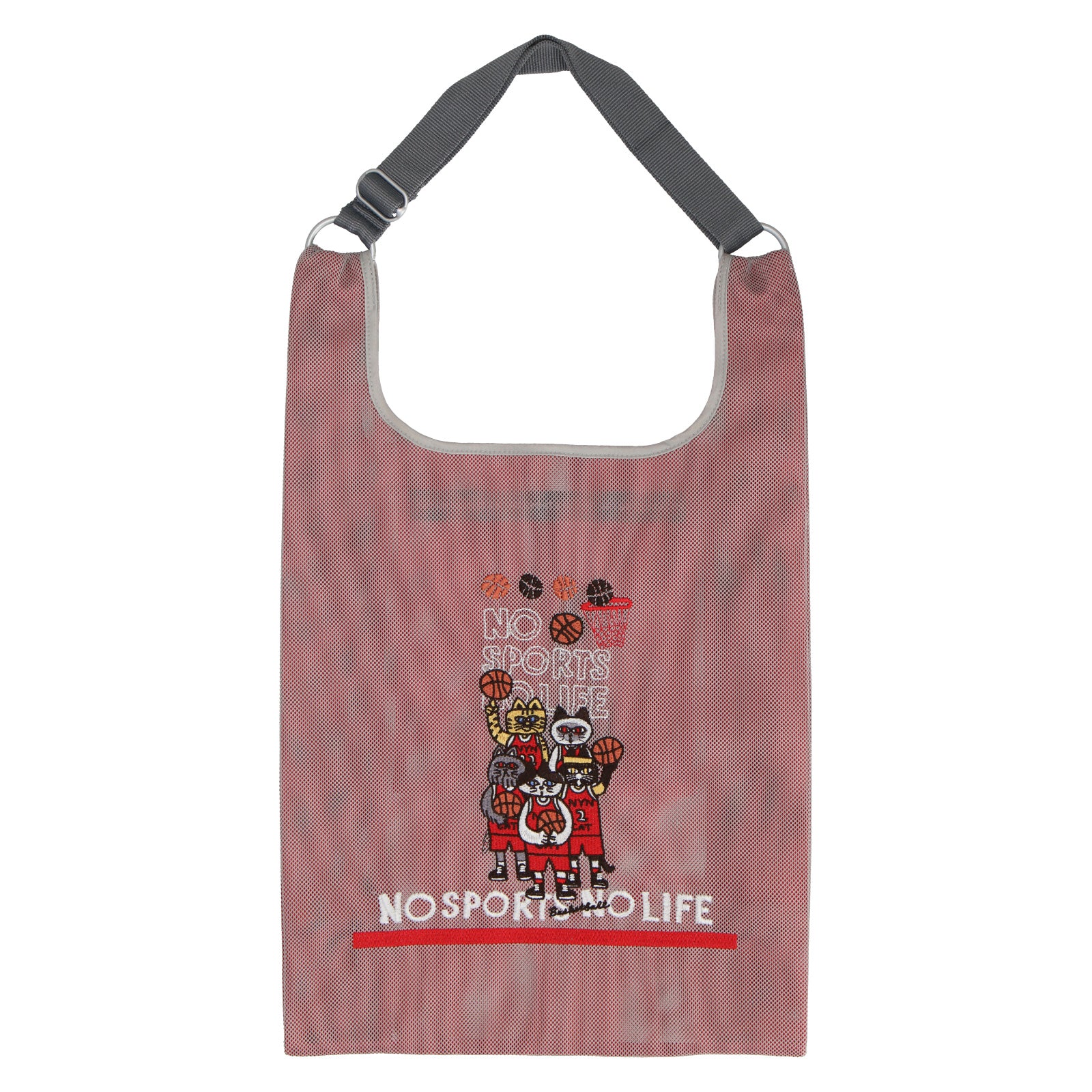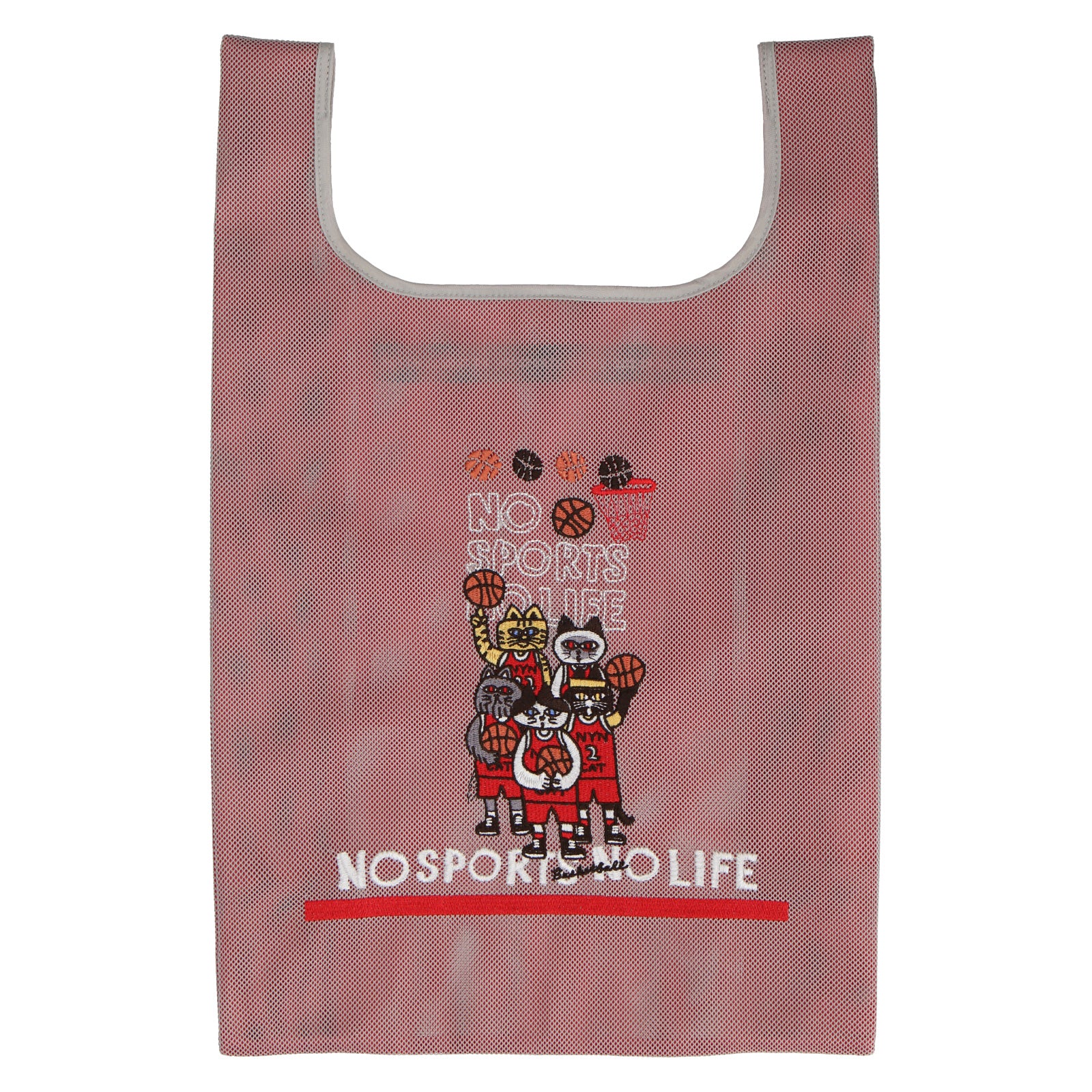 2色重なるメッシュ生地は、中と外で色が違い、楽しい色使いとなっています。 メッシュバッグは、スポーツ種目30柄でデザインされており、刺繍で表現されています。 スポーツを楽しむネコたちとともに元気よくスポーツを楽しもう!