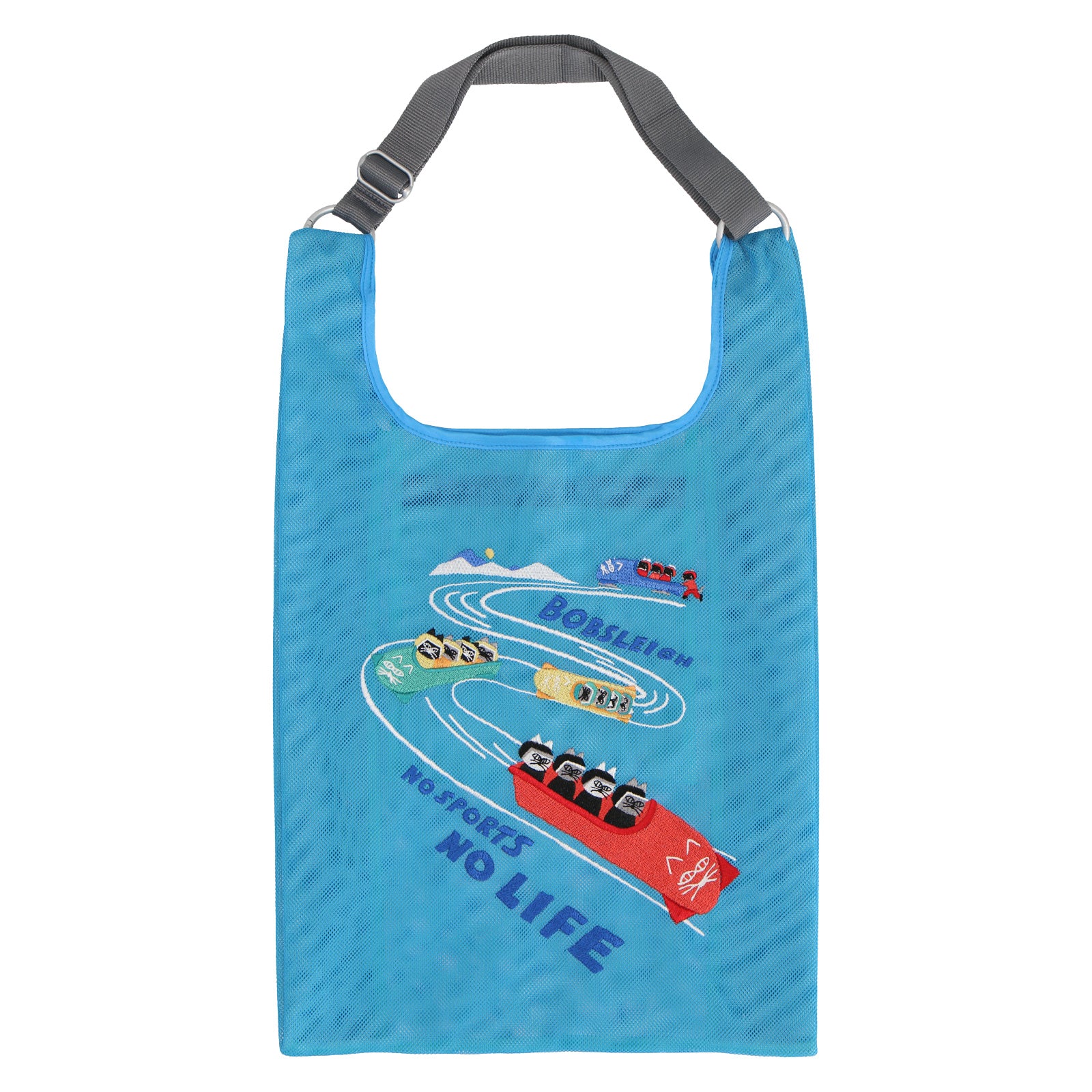 2色重なるメッシュ生地は、中と外で色が違い、楽しい色使いとなっています。 メッシュバッグは、スポーツ種目30柄でデザインされており、刺繍で表現されています。 スポーツを楽しむネコたちとともに元気よくスポーツを楽しもう!