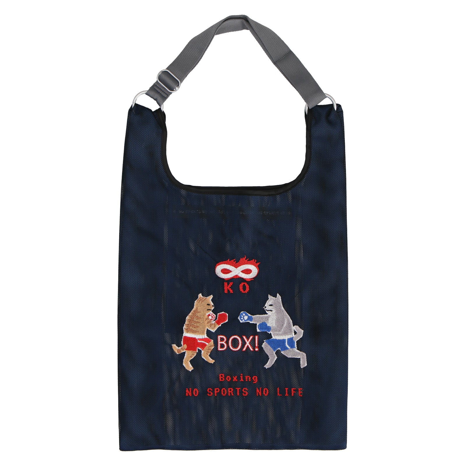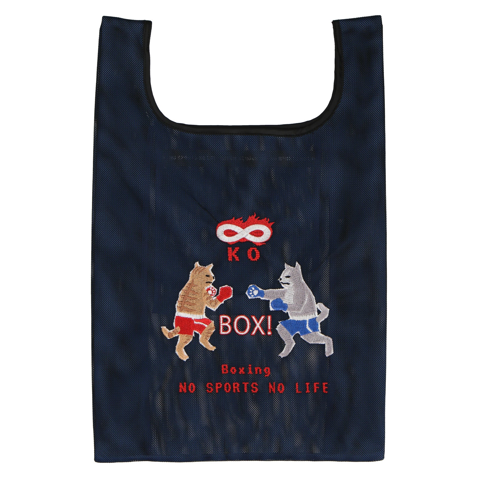 2色重なるメッシュ生地は、中と外で色が違い、楽しい色使いとなっています。 メッシュバッグは、スポーツ種目30柄でデザインされており、刺繍で表現されています。 スポーツを楽しむネコたちとともに元気よくスポーツを楽しもう!