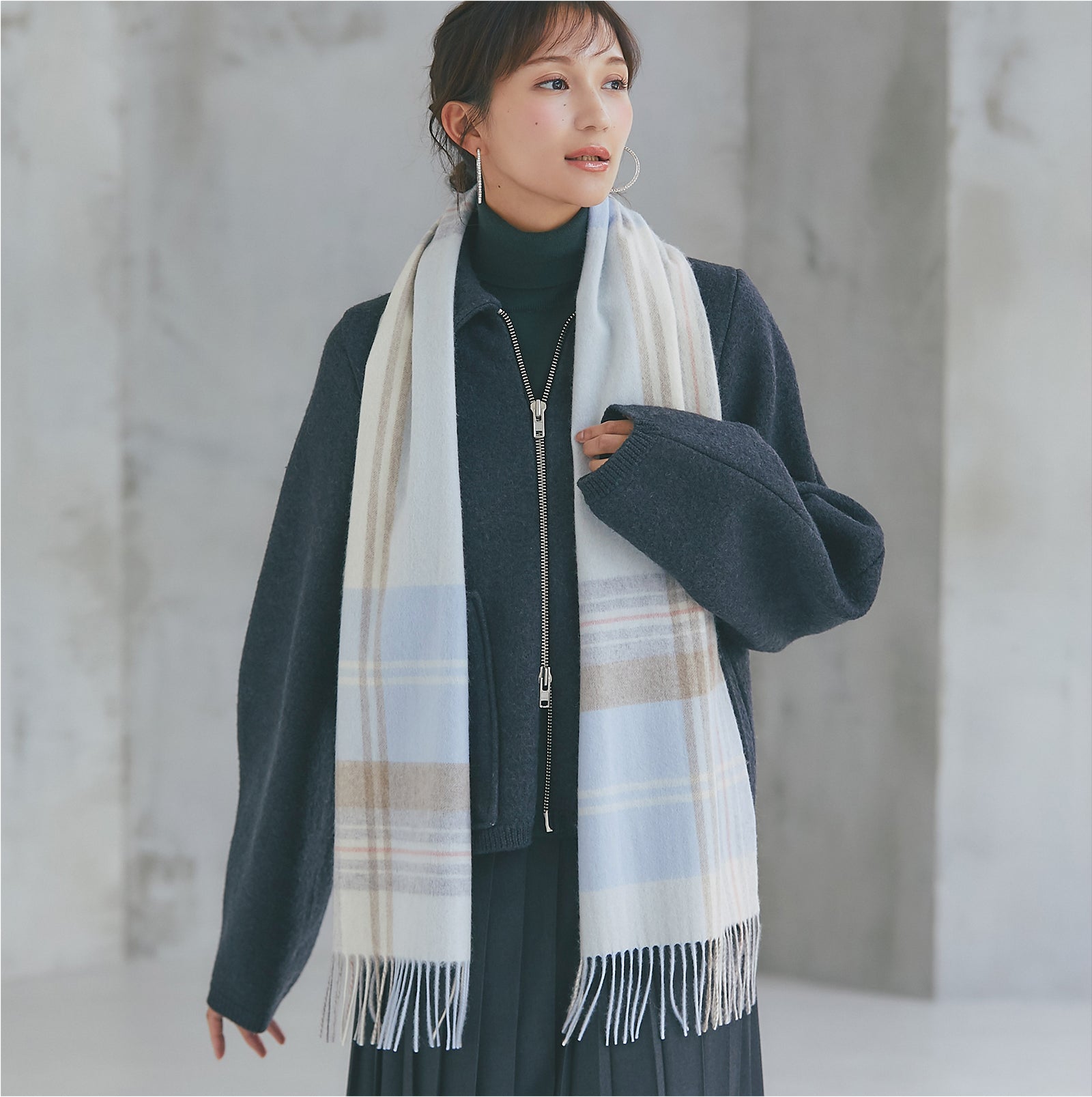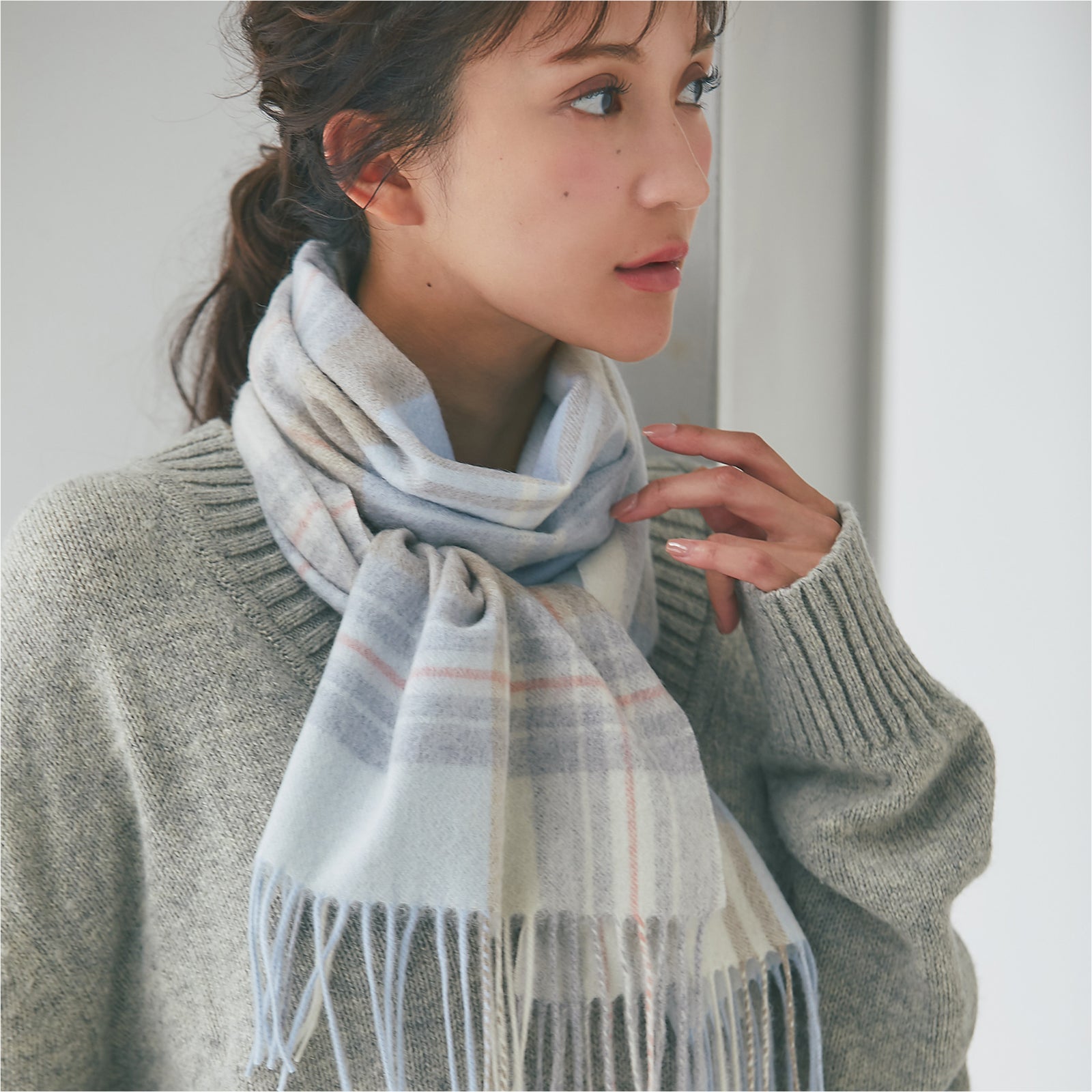 やわらかな肌ざわりと暖かさが魅力のカシミヤ100%マフラー。