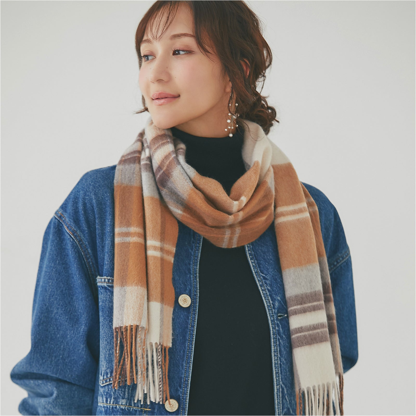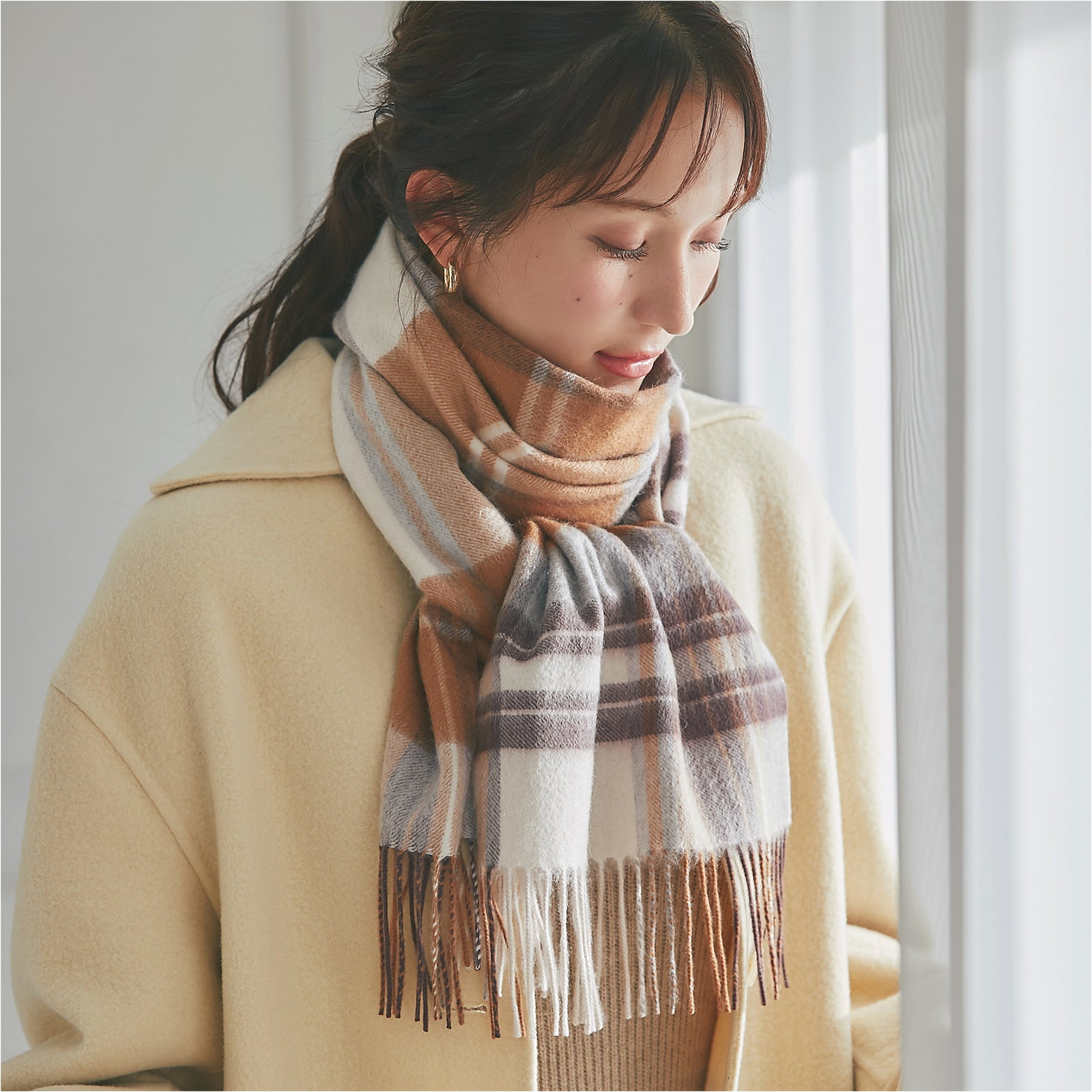 やわらかな肌ざわりと暖かさが魅力のカシミヤ100%マフラー。