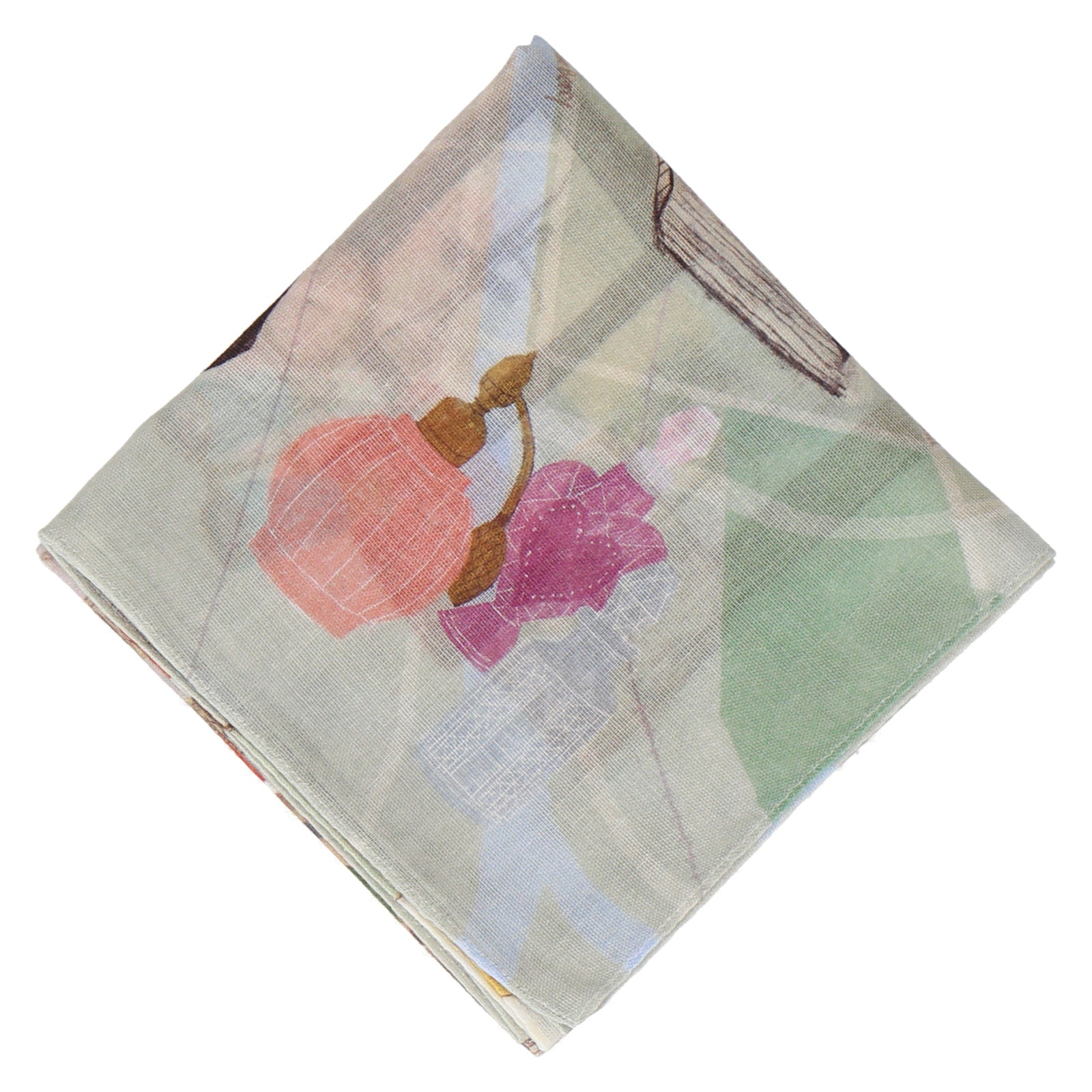 マップ風にデザインされた可愛らしいCHIZU柄をプリントハンカチにデザインしました。58㎝の大判ハンカチは、スカーフとしても使える便利なサイズです。吸水性が良く、風合いの良いガーゼ素材のハンカチです