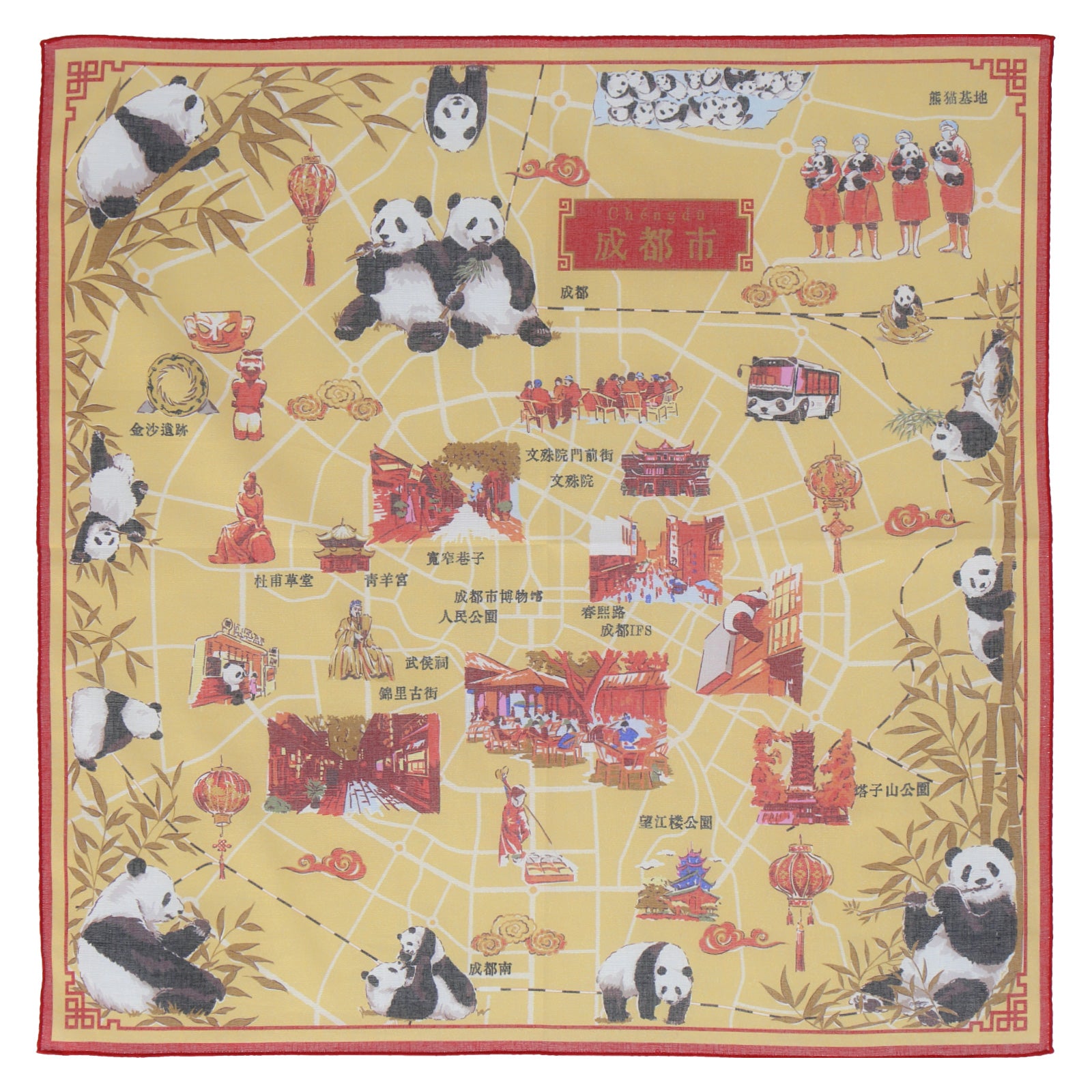 マップ風にデザインされた可愛らしいCHIZU柄をプリントハンカチにデザインしました。62㎝の大判ハンカチは、スカーフとしても使える便利なサイズです。吸水性が良く、風合いの良いガーゼ素材のハンカチです