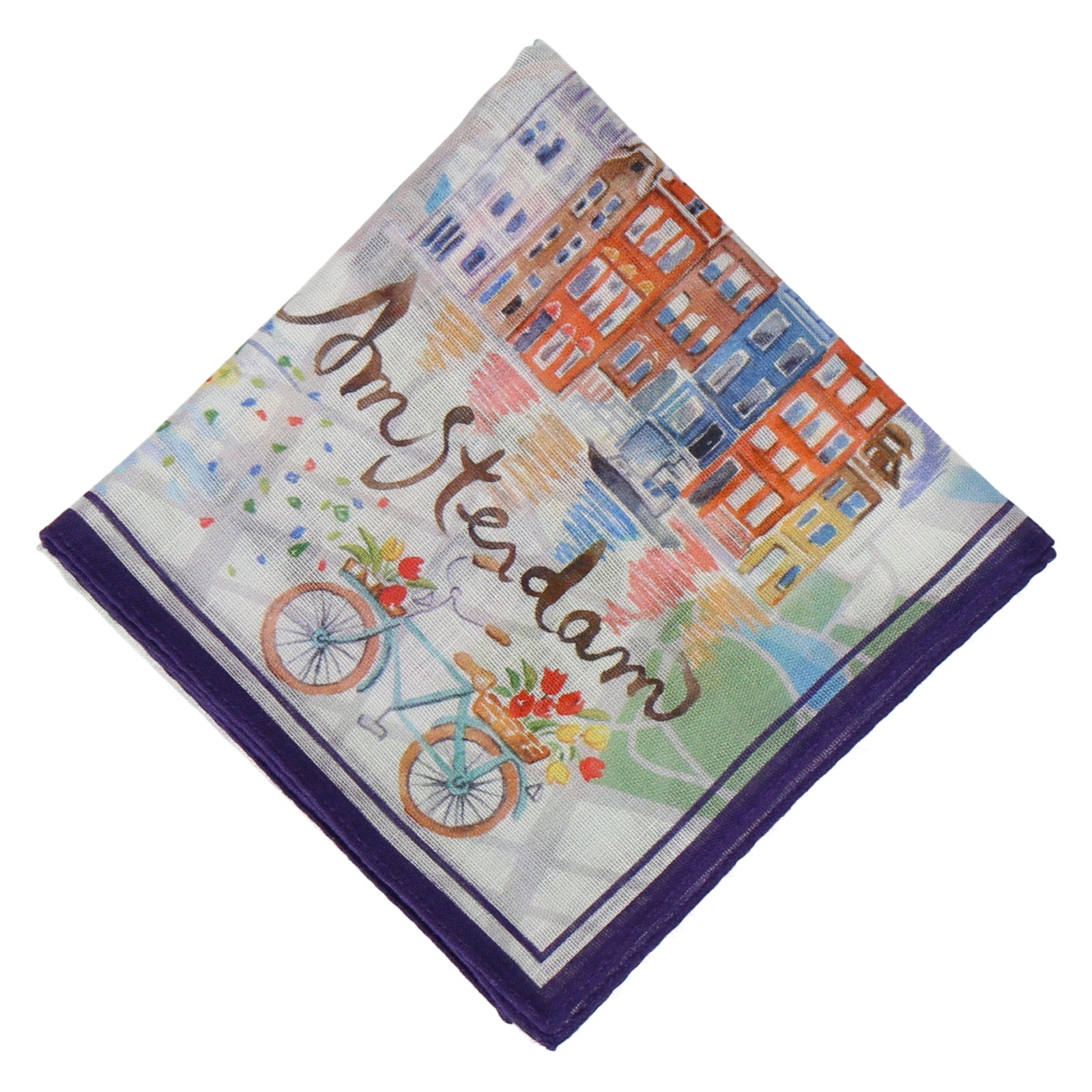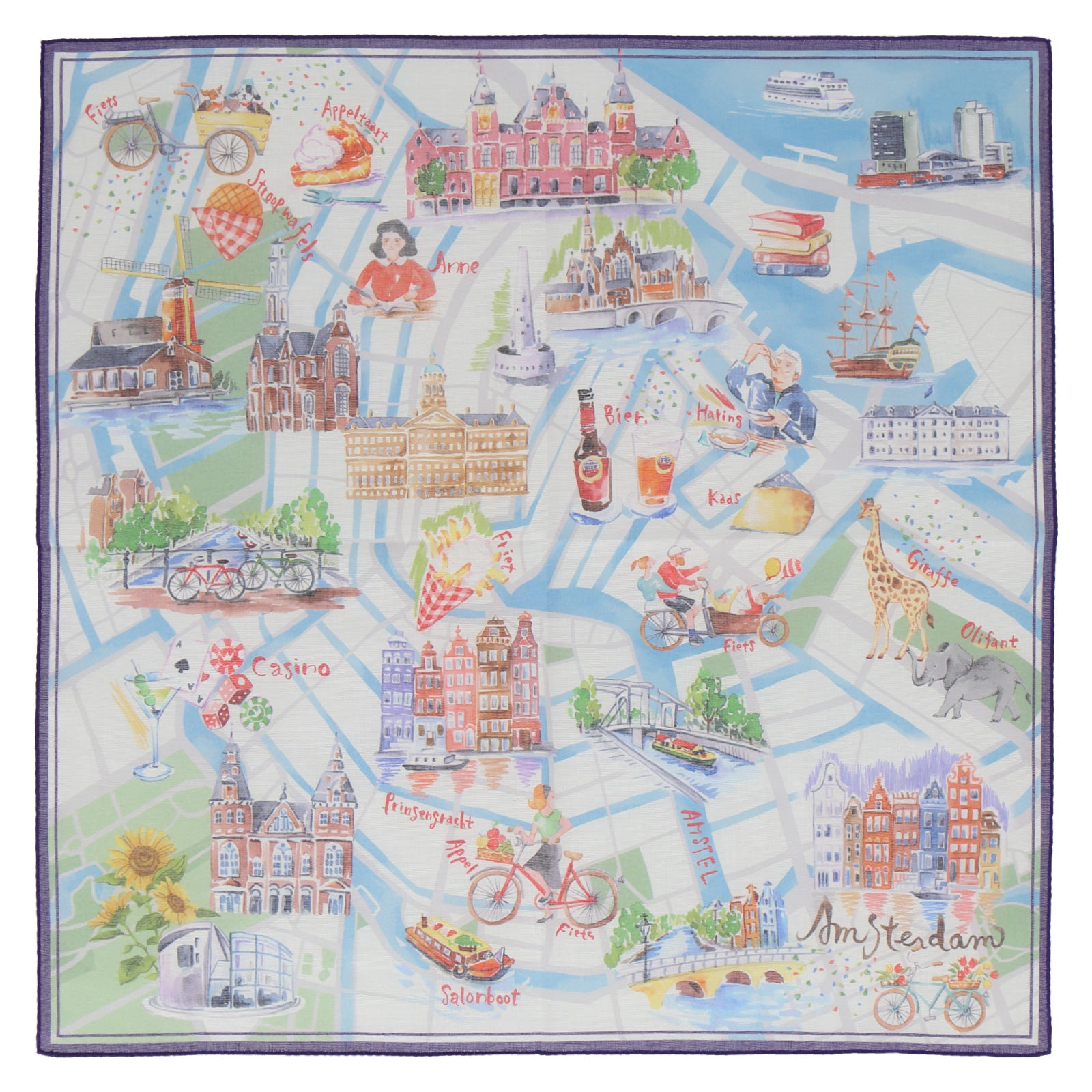 マップ風にデザインされた可愛らしいCHIZU柄をプリントハンカチにデザインしました。63㎝の大判ハンカチは、スカーフとしても使える便利なサイズです。吸水性が良く、風合いの良いガーゼ素材のハンカチです
