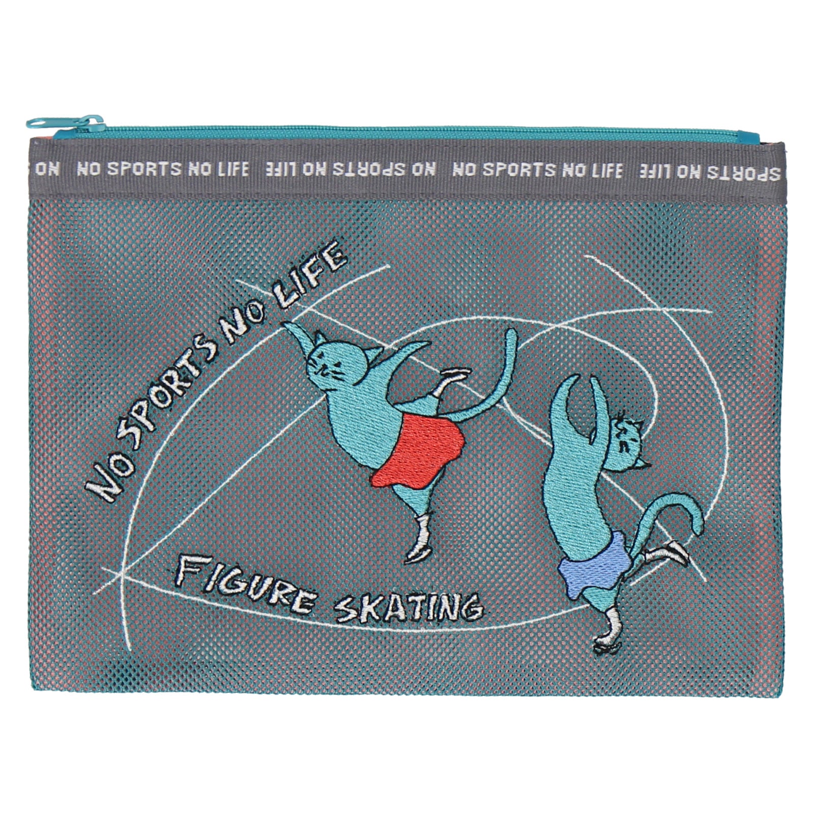 2色重なるメッシュ生地は、中と外で色が違い、楽しい色使いとなっています。 メッシュポーチは、スポーツ種目30柄でデザインされており、刺繍で表現されています。 スポーツを楽しむネコたちとともに元気よくスポーツを楽しもう!