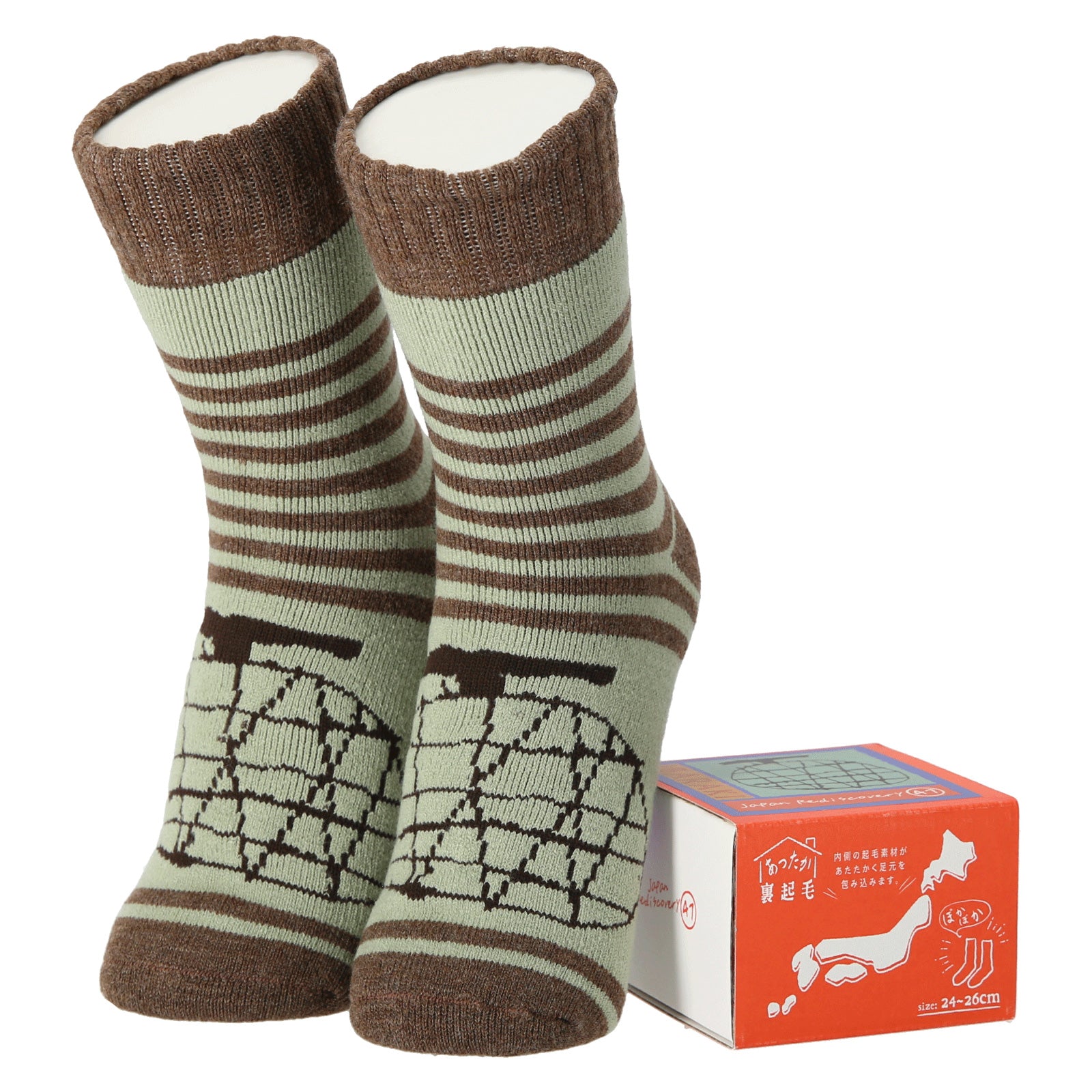 靴下内側のあったか起毛素材があたたかく足元を包み込みます。47 japan rediscoveryらしい楽しいデザインであたたかく楽しく過ごしましょう♪