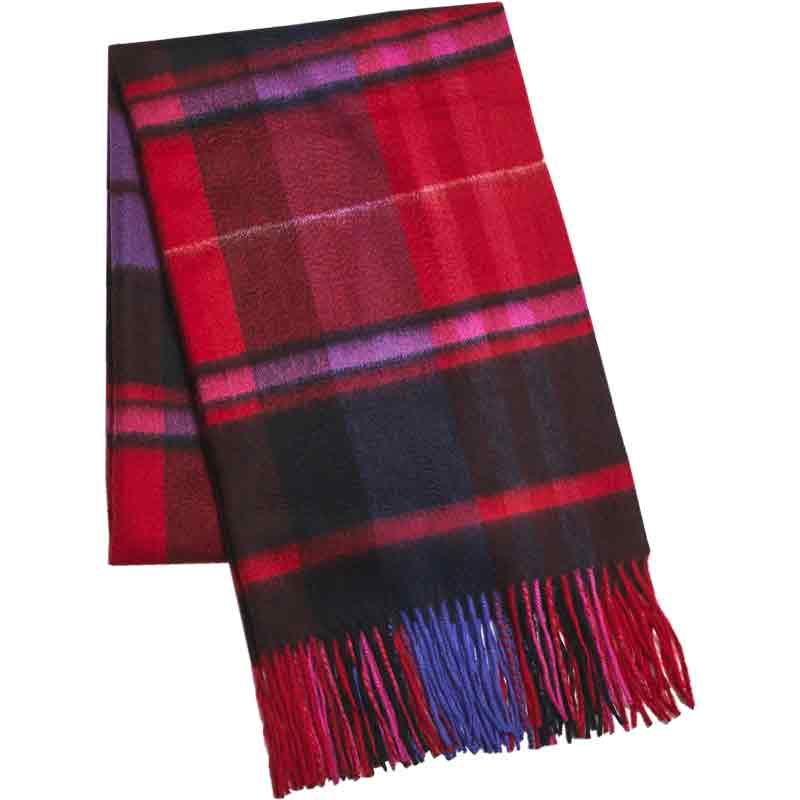 きりりとしたビビッドピンクにネイビーを合わせ、ブラックで締めたこなれ感のある一枚。色が多い分意外と合わせやすく、一枚でぱっと華やぎ顔に。