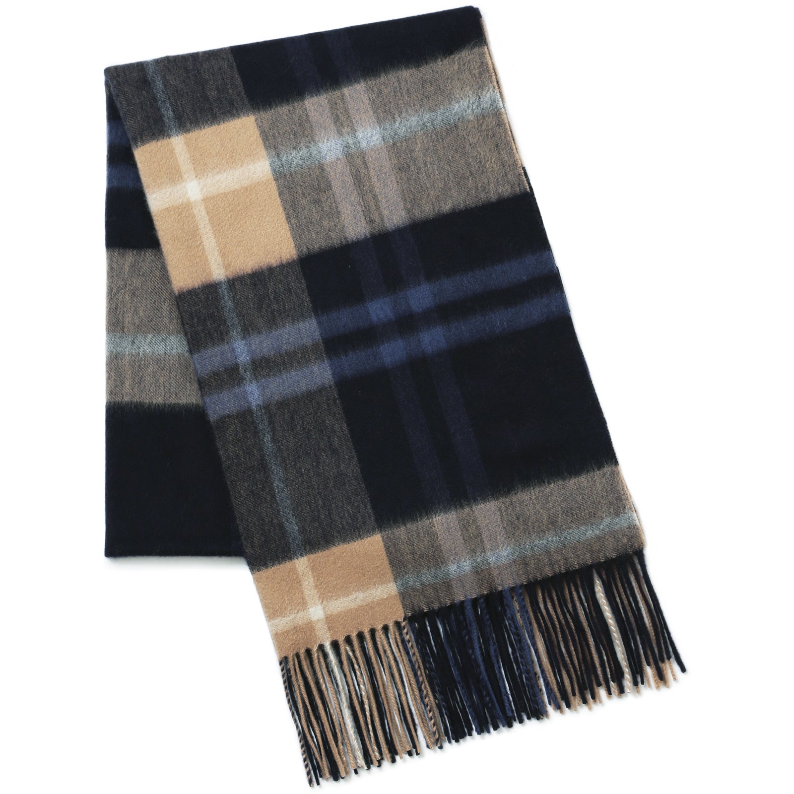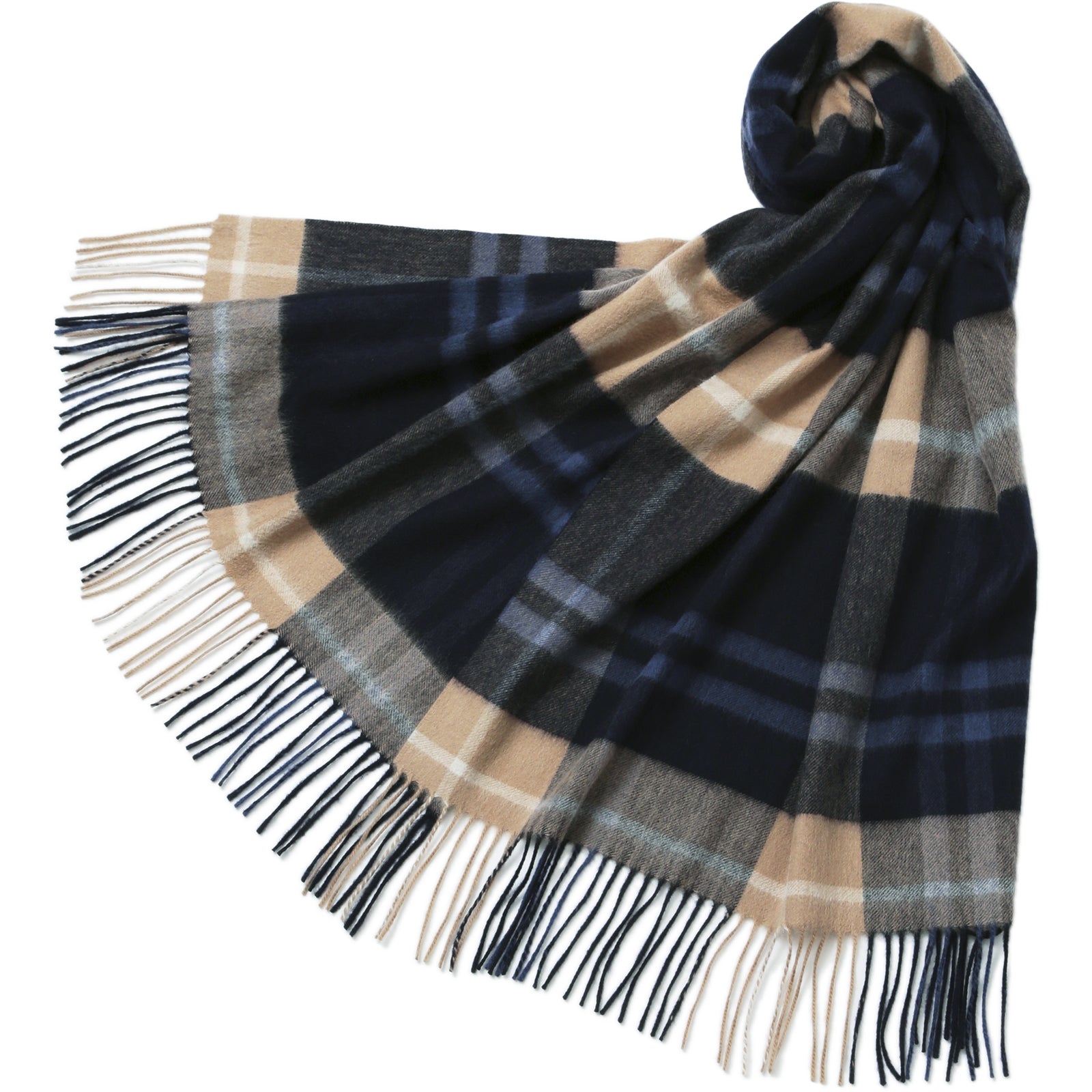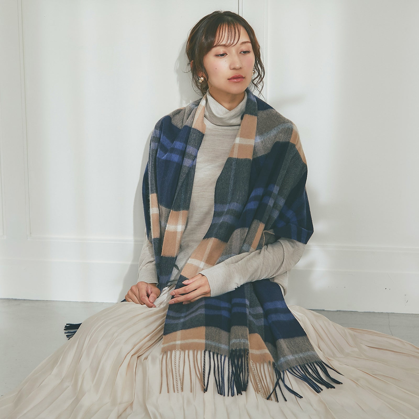 深みのあるネイビーにベージュとブルーを合わせた、トラッド感あふれるチェック。