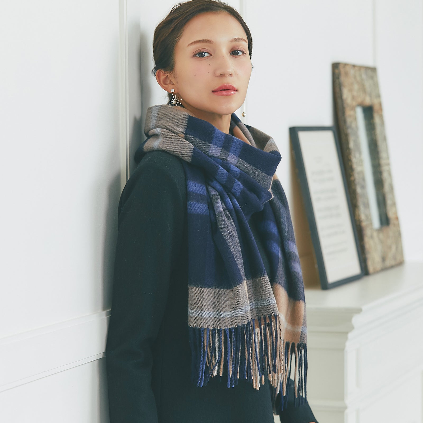 落ち着いた配色ながら、ほどよく存在感があり、いつものスタイルにさらっと巻くだけでこなれた印象に。