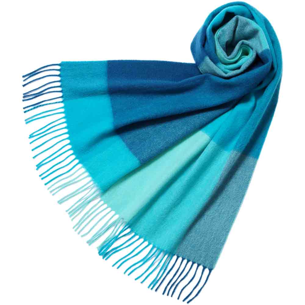 3色の糸を組み合わせて多数のカラーを表現したブロック柄マフラーです。さまざまなブロックによるカラー表現でお洋服のスタイリングに華やかさをプラスします。