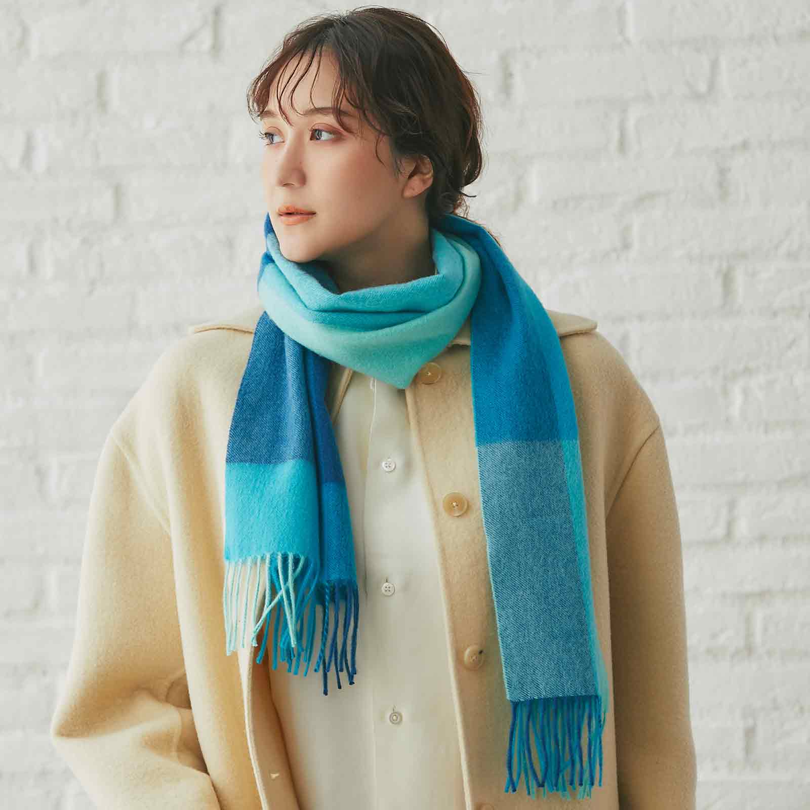 やわらかな肌ざわりと暖かさが魅力のカシミヤ100%マフラー。