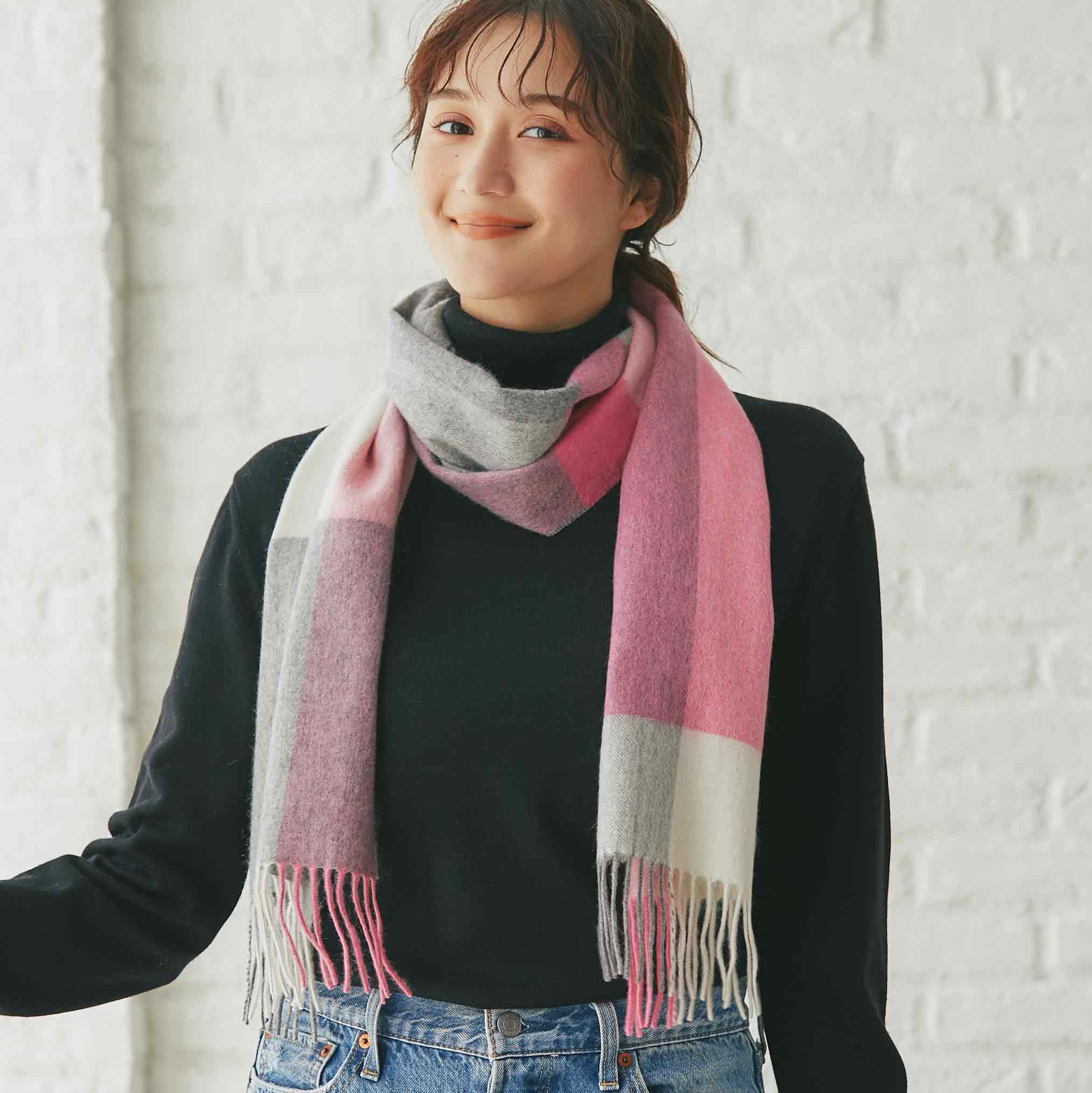 やわらかな肌ざわりと暖かさが魅力のカシミヤ100%マフラー。